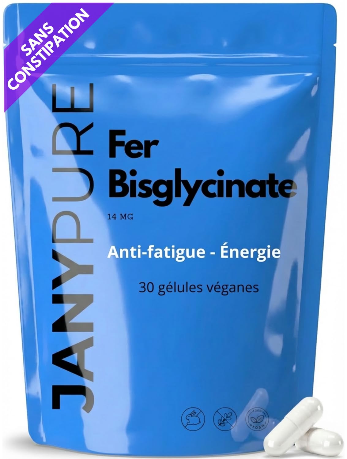 Fer Bisglycinate 14 mg - Haute Absorption & Digestion Facile - Fer Doux Sans Constipation - Anti-Fatigue & nergie - Compl ment Alimentaire Sans Gluten - 30 G lules V gan - Cure 1 Mois