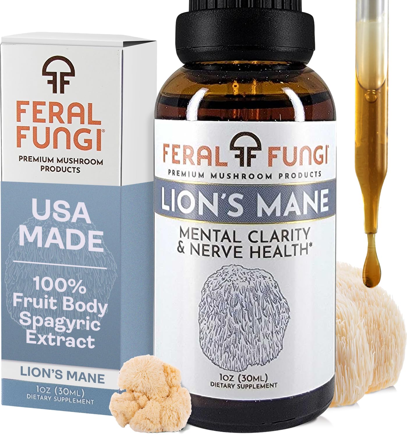 Feral Fungi Lion's Mane Tincture - Say NO to Often diluted tinctures That Don t Work - 100% Pure Mushroom Extract from USA Grown & Harvested Mushrooms - 1 oz