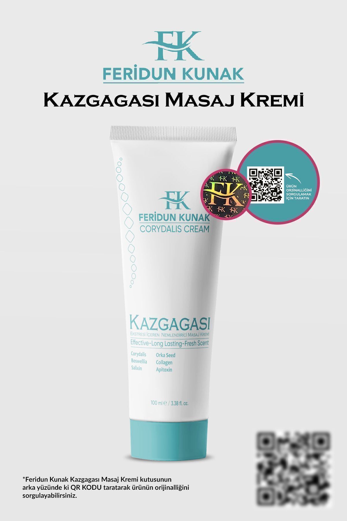 Feridun kunak gooseneck natural and effective pain massage cream 100 ml is a pain cream containing natural plant extracts and gooseneck. Helps to relieve various pains such as muscle, joint, rheumatic pains, back, neck, ankle and foot pains. Relieves muscle tension and spasms. Reduces joint inflammation and pain caused by arthritis. Relieves pain caused by chronic joint diseases such as rheumatoid arthritis and osteoarthritis. Reduces pain in the waist and back area. Relieves neck stiffness and tension. reduces foot and ankle pain caused by sprains(a), strains and other causes. preparation: Make sure the area where you will apply the cream is clean and dry. application: Apply a small amount of cream to the painful area. massage gently into the skin with circular movements. frequency: Apply 2-3 times daily as needed washing hands: Wash your hands thoroughly after application pain reduction: Usually a decrease in pain and a feeling of relief in a short time after application. ease of movement: Relaxation and increase in joint and muscle movements along with pain reduction. relaxation: A feeling of relaxation and relief of muscles. long-term use: Significant improvement in chronic pain and pain relief can be observed with regular use. allergic reactions: If you experience any skin reaction or signs of allergy, stop use and consult a healthcare professional. eye contact: Do not get the cream in your eyes. in case of contact, wash with plenty of water. open wounds: Do not use on open wounds or irritated skin. keep away from children: Keep the cream out of reach of children. 100 ml domestic production