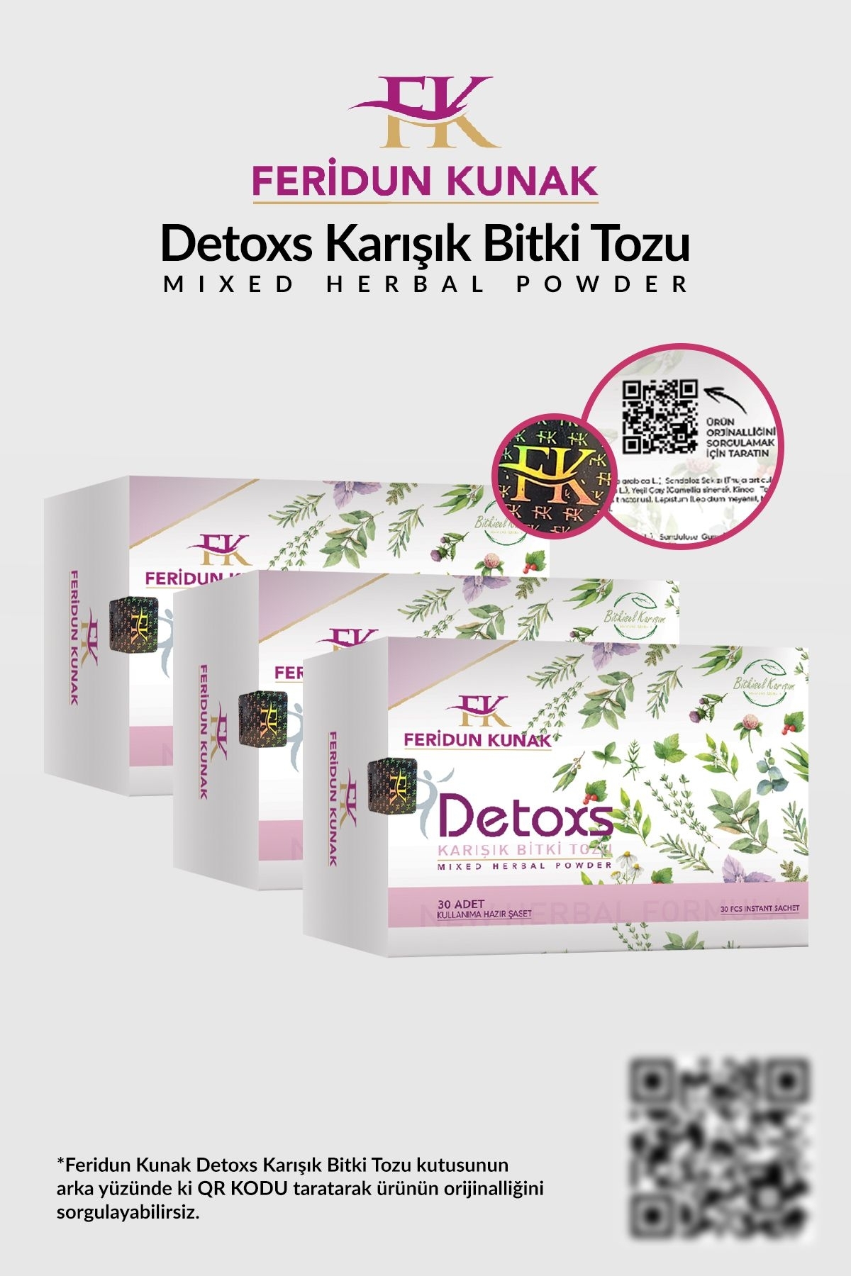 Feridun Kunak Mixed Herbal Detox Tea 30 x 3This tea, made with a blend of herbs, is offered in 5g sachets. One box contains 30 sachets and provides 30 days of use.How to Use Feridun Kunak Detox?It is recommended to use it once a day. Pour one sachet into a glass of hot water, stir, and drink.