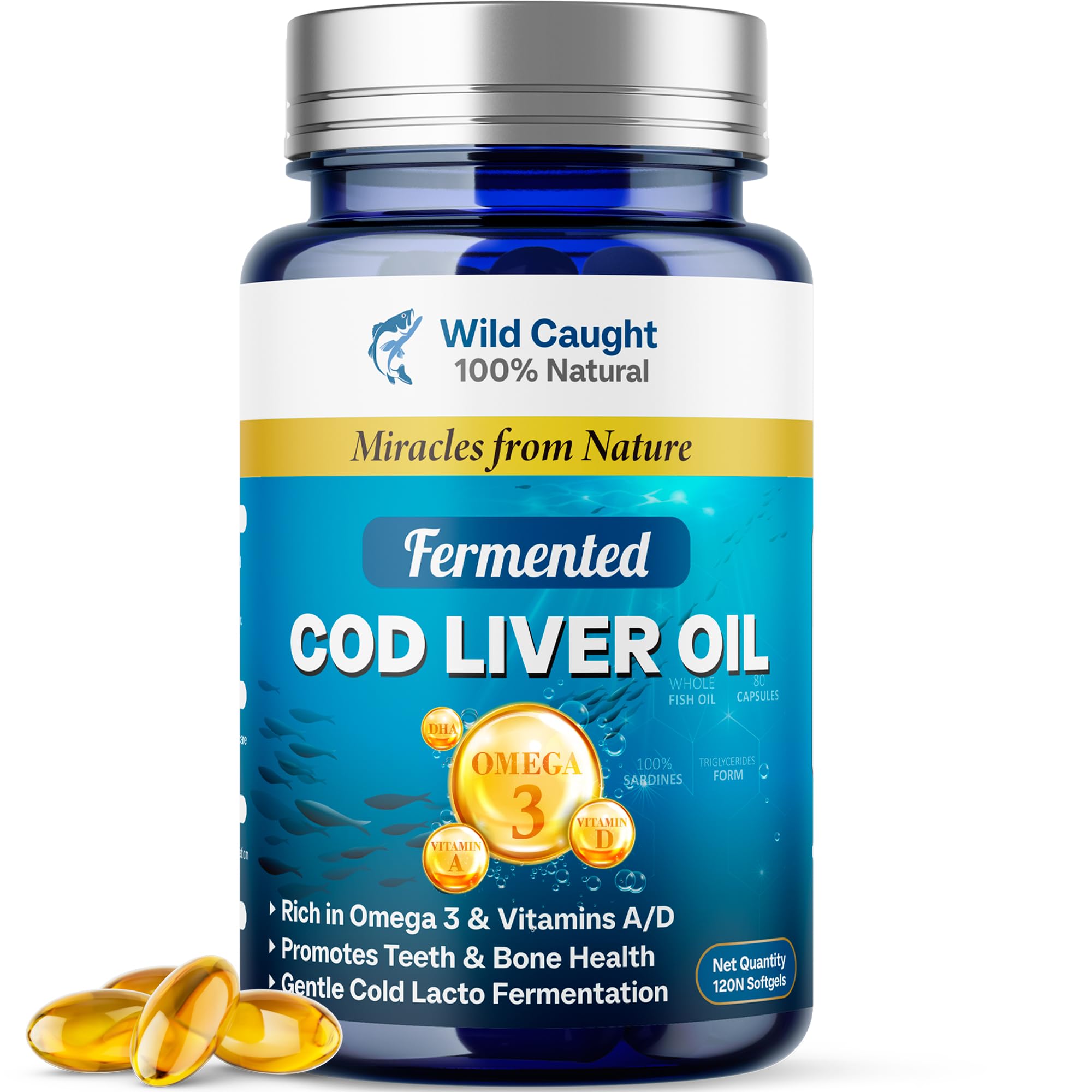 LIFETIME SUPPORT TRUSTED BRAND COMMITMENT, Your health journey is our priority. That's why we stand behind every bottle of our fermented cod liver oil capsules with lifetime customer support. Whether you're a first-time buyer or a longtime user, our team is here for you—always. Backed by rigorous quality standards and a passion for wellness, we're proud to be your trusted source for cod liver oil softgels. PURE, WILD-CAUGHT, AND TRULY NATURAL, We believe what's not in your supplement is just as important as what is. That's why our fermented cod liver oil capsules are made exclusively from 100 wild-caught Atlantic cod—never farmed, never diluted, and never processed with synthetic additives. From ocean to capsule, every batch is cold processed and lacto-fermented to retain its full nutrient profile without compromise. For families seeking cod liver oil capsules organic with transparent sourcing and uncompromising standards, Bingbrofam is the name to remember. POWERFUL NUTRIENTS THAT SUPPORT THE WHOLE BODY, Your body thrives on balance—and the naturally occurring Vitamin A, D, K2, and Omega-3s in our fermented cod liver oil capsules help maintain it. These essential nutrients work together to promote strong bones, resilient joints, healthy skin, and immune system balance. Whether you're recovering from physical stress, supporting growing children, or looking to maintain long-term vitality, our cod liver oil softgels deliver clean, bioavailable nutrition from a trusted, natural source. Unlike synthetic supplements, this organic cod liver oil works in harmony with your body—helping you feel your best from the inside out. FAMILY-FRIENDLY FORMULA WITH NO FISHY AFTERTASTE, Finding a cod liver oil that your whole family can actually enjoy shouldn't feel like a challenge. Our fermented cod liver oil capsules are specially crafted for both adults and children—free from strong odors or unpleasant fishy burps. Thanks to our cold processing and gentle lacto-fermentation, the nutrients are preserved without the harsh taste. These cod liver oil capsules organic are easy to swallow, unflavored, and ideal for even picky eaters or sensitive stomachs. Whether you're caring for a growing child, a health-focused adult, or an aging loved one, our cod liver oil softgels make daily nutrition simple, effective, and worry-free. NOURISH FROM WITHIN WITH ESSENTIAL FAT-SOLUBLE NUTRIENTS, Do your teeth seem prone to cavities? Do your eyes often feel dry and irritated? Are your joints frequently sore or stiff? These common signs may point to a deficiency in vital nutrients like Vitamin A, D, K2, and Omega-3—compounds your body produces only in small amounts, and that are often lacking in modern diets. Unlike conventional fish oils that contain synthetic additives or are processed with heat, Bingbrofam's Fermented Cod Liver Oil is cold processed and lacto-fermented to preserve maximum nutrient potency. It's a pure, natural way to replenish what your body truly needs and support your wellness from the inside out.