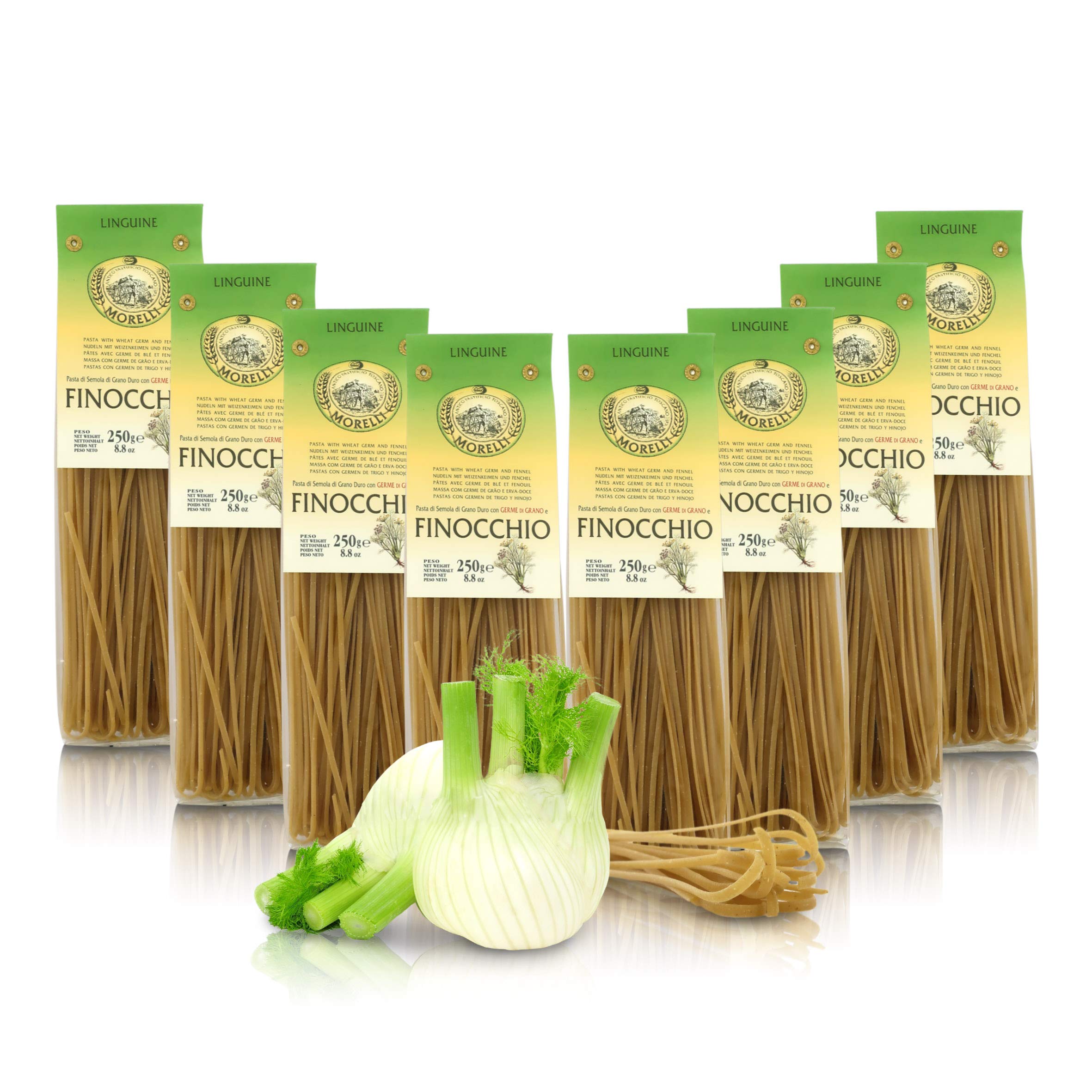 Fenchelingue, flavored pasta with 8 packs of 250 g.Dimensions: 30.0 x 9.0 x 5.0 cm. Material: various.Tong aan de venchel, gearomatiseerde pasta, 8 verpakkingen à 250 g Fenchelingue, gearomatiseerde pasta met 8 verpakkingen van 250 g.Afmetingen: 30,0 x 9,0 x 5,0 cm. Materiaal: verschillende.