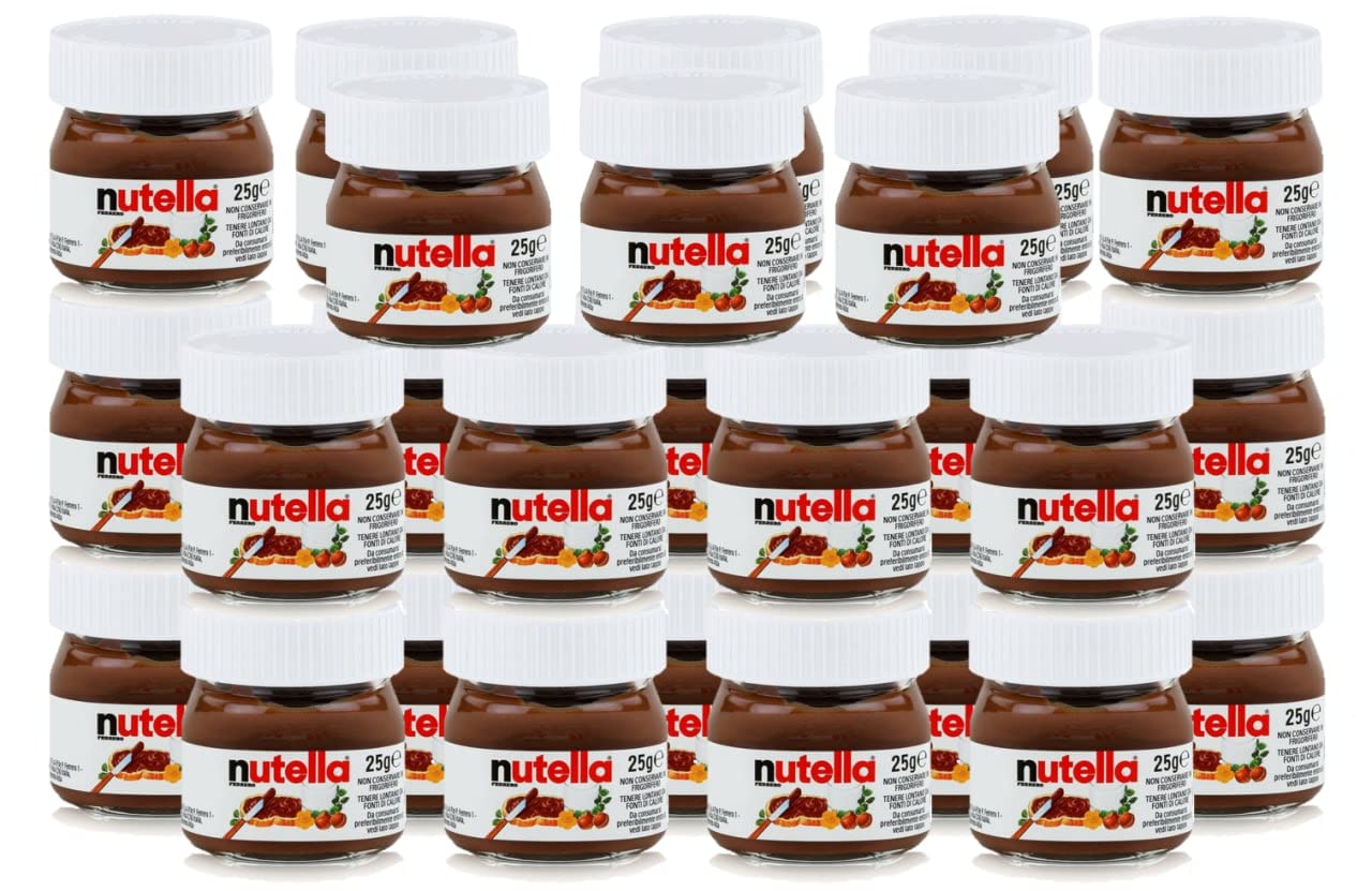 FERRERO Nutella Lot de 26 pots miniatures en verre, 25 g, crème de noisettes et chocolat à tartiner Promoo