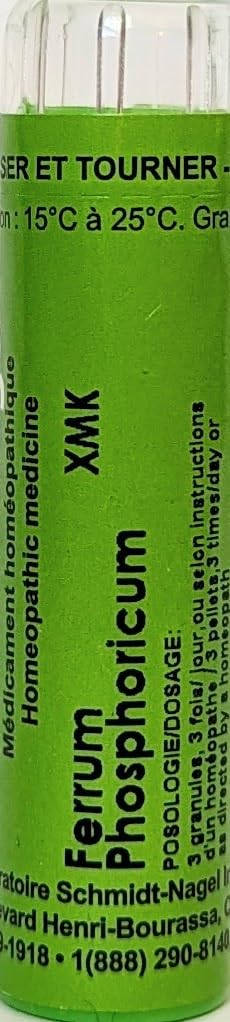 Ferrum Phosphoricum 10M (XMK) Schmidt-Nagel Canada (Homeodel)All medicines are manufactured using Good Manufacturing Practices (GMP) in accordance with Swiss regulatory authorities as well as Health Canada. Tubes are designed for convenient dispensing of remedy pellets. 90 granules per tube. Non-medicinal ingredients: organic cane sugar. Lactose-free pellets – Vegan-friendly product.