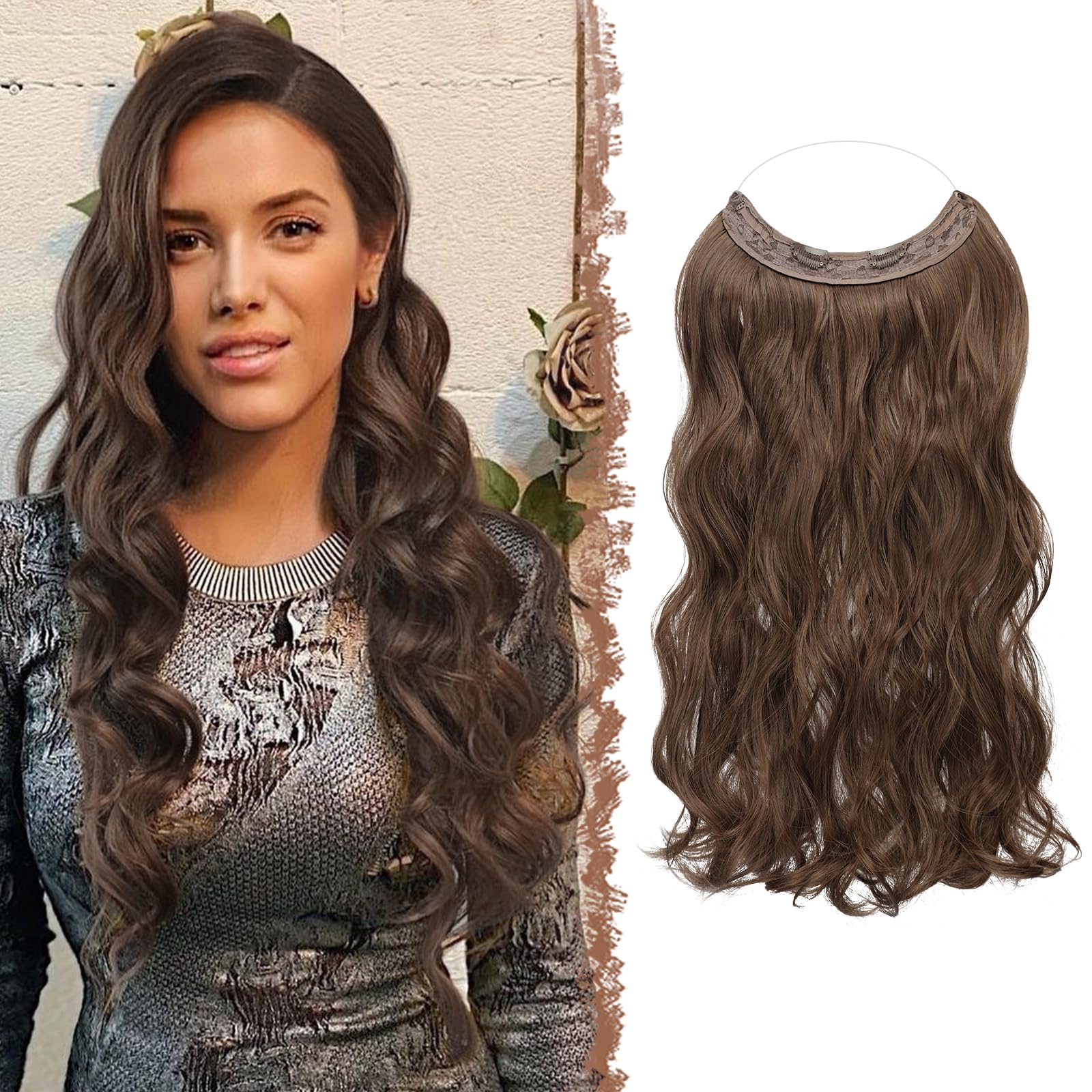 Superior service: Due to the different screen settings on different devices, you can see a difference in the color of your hair part from the picture.We offer color advice and recommendation services if you hesitate to choose from color, please contact us with some photos of your hair in natural light, we will recommend the appropriate color for you.Multif functions and all occasions: You can wear it as required.It fits for: party, wedding, cosplay, everyday life, leisure, festival, date, meeting, Halloween, concert, prom. It is also a great idea as a gift for friends and family.Easy to use: Place the hair extensions with wire like a headband on your head, fasten them with 2 clips and hide the wires with your own hair.With the adjustable, invisible, transparent wire and the clips on the top strike, it fits your hair perfectly.The hair extension also has hooks to ensure a secure hold.Add length and volume: The invisible hair extension with wire is the best way to give the hair more length and volume in order to give your hair a fuller, springs and enchanting look.Premium-Rohhaar: Made from high-quality, heat-resistant synthetic fiber, which is not only soft, silky and smooth, but can also be mixed as your own natural hair.Do not get tangled so easily and bring an experience in salon quality.Superior Service: Aufgrund der unterschiedlichen Bildschirmeinstellungen auf verschiedenen Geräten, können Sie einen Unterschied im Farbton Ihres Haarteils aus dem Bild zu sehen. Wir bieten Farbberatung und Empfehlung Dienstleistungen, wenn Sie zögern, über Farbe wählen, kontaktieren Sie uns bitte mit einigen Fotos von Ihrem Haar in natürlichem Licht genommen, werden wir die geeignete Farbe für Sie empfehlen. Multifunktionen und alle Gelegenheiten: Sie können es nach Bedarf tragen. Es passt für: Party, Hochzeit, Cosplay, Alltag, Freizeit, Festival, Date, Meeting, Halloween, Konzert, Abschlussball.Es ist auch eine tolle Idee als Geschenk für Freunde und Familie. Einfach zu verwenden: Setzen Sie die Haarverlängerungen mit Draht wie ein Stirnband auf Ihren Kopf, befestigen Sie sie mit 2 Clips und verstecken Sie die Drähte mit Ihrem eigenen Haar. Mit dem verstellbaren, unsichtbaren, transparenten Draht und den Clips am Spitzeneinschlag passt es perfekt zu Ihrem Haar. Die Haarverlängerung verfügt außerdem über Haken, um einen sicheren Halt zu gewährleisten. Länge und Volumen hinzufügen: Die unsichtbare Haarverlängerung mit Draht ist die beste Möglichkeit, dem Haar mehr Länge und Volumen zu verleihen, um Ihrem Haar einen volleren, federnden und bezaubernden Look zu verleihen. Premium-Rohhaar: Hergestellt aus hochwertiger, hitzebeständiger Kunstfaser, die nicht nur weich, seidig und glatt ist, sondern sich auch gut wie Ihr eigenes natürliches Haar vermischen lässt. Verheddern Sie sich nicht so leicht und bringen Sie ein Erlebnis in Salonqualität mit.FESHFEN Invisible Hair Extensions Secrets Haarverlängerungen mit Draht Dunkelbraun Rotbraun Synthetisch Verstellbar Lockiges Haar Langes Gewelltes Geheimes Haarteil für Frauen 50cm 50 cm-H01 Dunkelbraun Rotbraun-H01