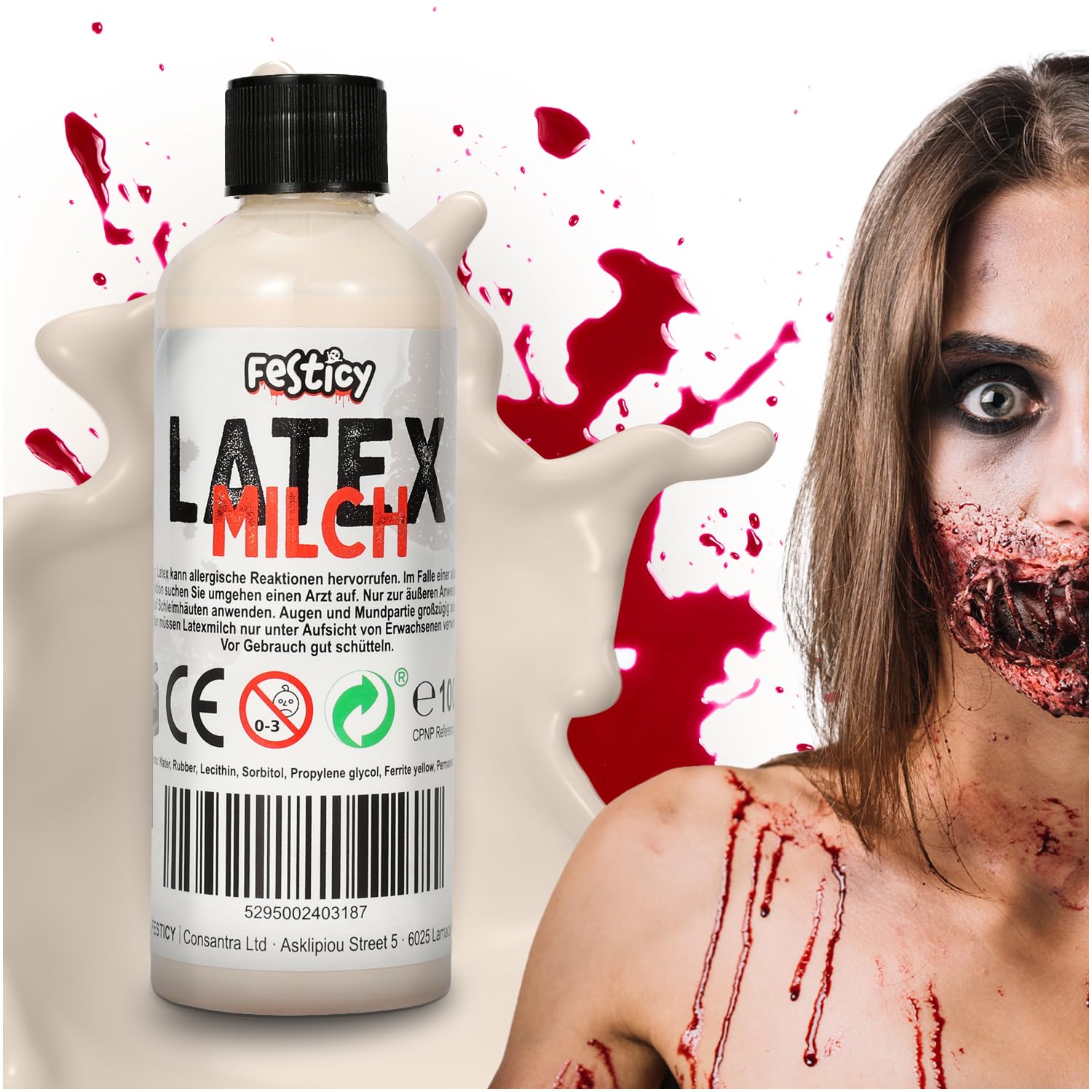 Discover the magic of Festicy's liquid latex, your new partner for Halloween makeup and special effects. This 100ml bottle of liquid latex is perfect for creating realistic wounds, cuts, and even skin aging for your next Halloween costume, whether for men or women. Ideal for professional makeup artists, as SFX makeup for Halloween, and for enthusiasts, our special effects latex makeup offers a versatile base for a wide range of zombie makeup looks. From classic vampire makeup to complex horror costume effects, this product allows for precise application and richly detailed creations. Our Halloween liquid latex makeup is specially designed to be applied and removed just as easily, without causing skin irritation. Thanks to the convenient 100ml bottle with a brush cap, you can apply the latex directly, without needing any additional tools. Use the liquid latex makeup for your next Halloween party or themed event. This is the perfect accessory for anyone looking to take their Halloween makeup to the next level. Create stunning effects that will amaze your friends and family. Order now and be ready to appear this Halloween with a look straight out of a horror movie, complete with the latex Halloween mask. With Festicy Latex Halloween, you're just one step away from your scariest costume yet! INSTRUCTIONS FOR USE Skin surface preparation: Cleanse your skin before use. Application techniques: Use a brush or sponge for application. Drying time: Allow the product to dry before adding more layers or costumes. Shelf life: Check the product's shelf life. Removal method: Remove the product with soap and water. SAFETY WARNING Please follow the safety instructions on the packaging! Not suitable for children under 3 years old. Do not use near the eyes or mouth. Do not ingest. See moreEssential for costumes: Not just for vampire makeup, but also for any type of monster and horror costume. Easy to remove and extremely effective. Skin-friendly: This liquid latex has been skin-tested to ensure it's gentle on your skin and can be used without irritation. It's the must-have Halloween face makeup. Halloween latex wounds: Specially formulated for Halloween, our 100ml liquid latex allows you to create professional zombie makeup effects that you'll love. High-quality liquid latex: Perfect for creating realistic wounds, scars, and skin textures. Our Halloween latex is easy to apply and provides long-lasting results. Versatile Halloween makeup: Transform yourself into terrifying characters with our liquid latex makeup. Ideal for adult Halloween makeup and scary effects for zombie and vampire costumes.Festicy Latex Maquillage Halloween Parfait pour effet spéciaux et maquillage Halloween (Couleur Peau 100ml)DESCRIPTION DU PRODUIT DESCRIPTION DU PRODUIT Découvre la magie du latex liquide de Festicy, ton nouveau partenaire pour les maquillage et les effet spéciaux d'Halloween. Ce halloween latex liquide de 100ml est parfait pour créer des blessures réalistes, des coupures et même des vieillissements de la peau pour ton prochain deguisement d'Halloween homme ou femme. Idéal pour les maquilleurs professionnels, comme maquillage SFX pour Halloween et pour les amateurs, notre latex maquillage effet spéciaux offre une base polyvalente pour de nombreux maquillage zombie. Du maquillage classique de vampire aux effets complexes de costumes d'horreur, ce produit permet une application précise et une création riche en détails. Notre produit Latex liquide maquillage Halloween est spécialement conçu pour être appliqué facilement et enlevé tout aussi facilement, sans provoquer d'irritation de la peau. Grâce au flacon pratique de 100 ml avec bouchon pinceau, tu peux appliquer le lait de latex directement, sans avoir besoin d'outils supplémentaires. Utilise le latex liquide maquillage pour la peau lors de ta prochaine fête d'Halloween ou d'un événement thématique. C'est l'accessoire parfait pour tous ceux qui veulent faire passer leur maquillage Halloween au niveau supérieur. Crée des effets impressionnants qui étonneront tes amis et ta famille. Commande-le maintenant et sois prêt à apparaître à Halloween avec un look qui pourrait sortir d'un film d'horreur et avec le masque halloween latex. Avec Festicy Latex Halloween, tu n'es plus qu'à un pas de ton costume le plus effrayant ! MODE D'EMPLOI Préparation de la surface de la peau : nettoyez votre peau avant utilisation. Techniques d'application : utilisez un pinceau ou une éponge pour l'application. Temps de séchage : laissez le produit sécher avant d'ajouter d'autres couches ou costumes. Durée de vie : vérifiez la durée de vie du produit. Méthode de retrait : retirez le produit avec du savon et de l'eau. AVERTISSEMENT DE SÉCURITÉ Veuillez respecter les consignes de sécurité figurant sur l'emballage ! Ne convient pas aux enfants de moins de 3 ans. Ne pas utiliser à proximité immédiate des yeux et de la bouche. Ne pas boire. Voir plusNécessite pour les costumes: Non seulement pour le maquillage de vampire, mais aussi pour tout type de costume de monstre et d'horreur. Facile à enlever et extrêmement efficace. Sans danger pour la peau: Le latex liquide pour la peau a été testé pour s'assurer qu'il est doux pour ta peau et peut être utilisé sans irritation, c'est le maquillage halloween pour visage Must Have. Blessures en latex Halloween: Spécialement formulé pour Halloween, notre latex liquide de 100ml te permet de créer des effets de maquillage zombie professionnels pour Halloween qui vont te plaire. Latex liquide de haute qualité: Parfait pour créer des blessures, des cicatrices et des textures de peau réalistes. Notre latex Halloween 2025 est facile à appliquer et offre des résultats durables. Maquillage Halloween polyvalent: Transforme-toi en personnages terrifiants grâce à notre latex liquide maquillage. Idéal pour le maquillage Halloween pour adultes et les effets effrayants pour les deguisement de zombie et de vampi