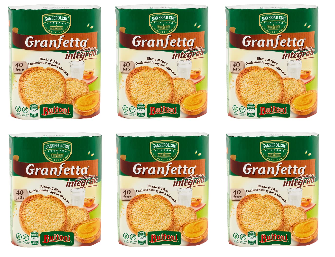 Buitoni Granfetta Lot de 6 graisses Biscottate Integrali avec farine de grains pleins 40 graisses graisses à oignons 300 g