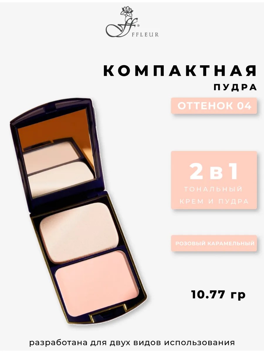 Не упустите возможность добавить этот прекрасный продукт в свою косметичку! Компактная пудра 2в1 — это не просто косметика, а верный помощник в создании вашего идеального образа. Вы сможете легко создать идеальный тон лица, который будет выглядеть натурально и свежо.