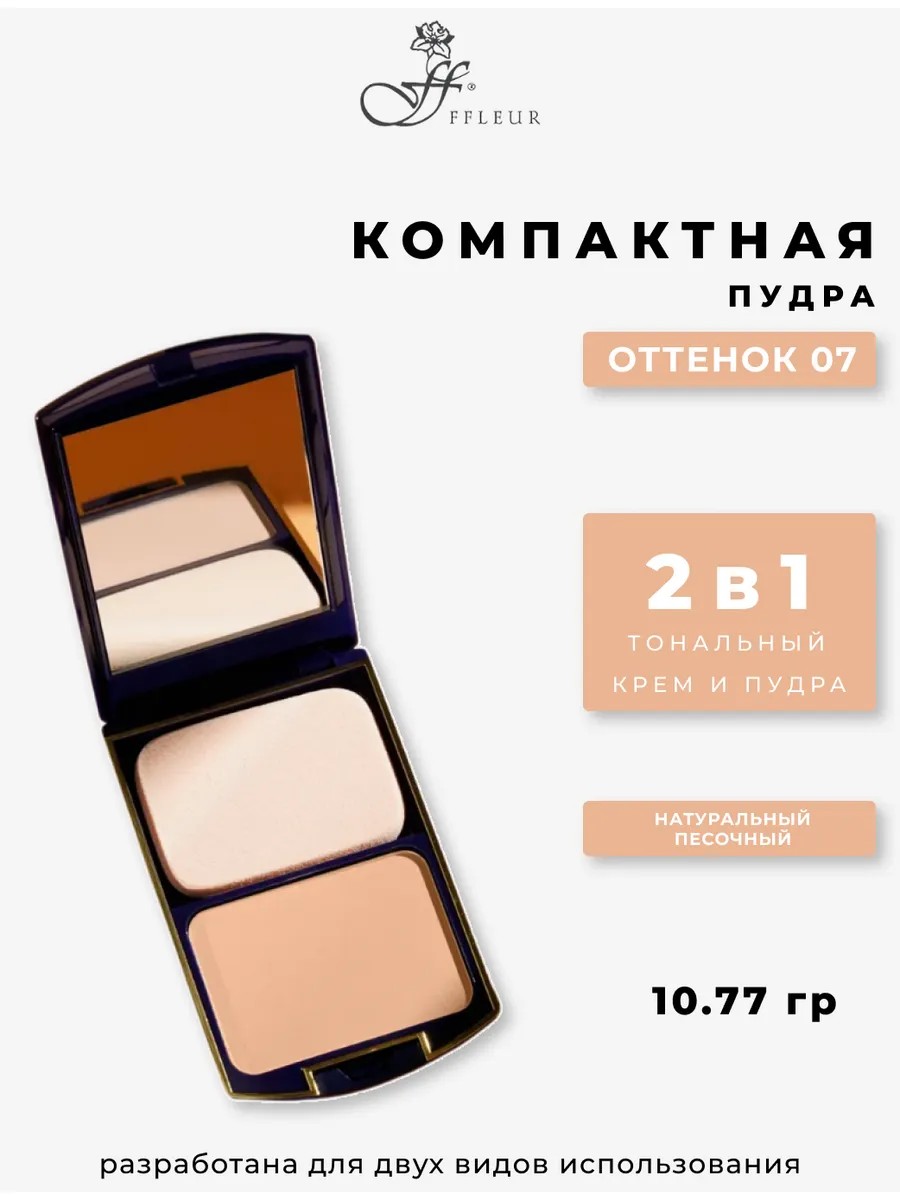 ffleur Пудра компактная 2в1 TWO WAY CAKE №07 Натуральный песочный