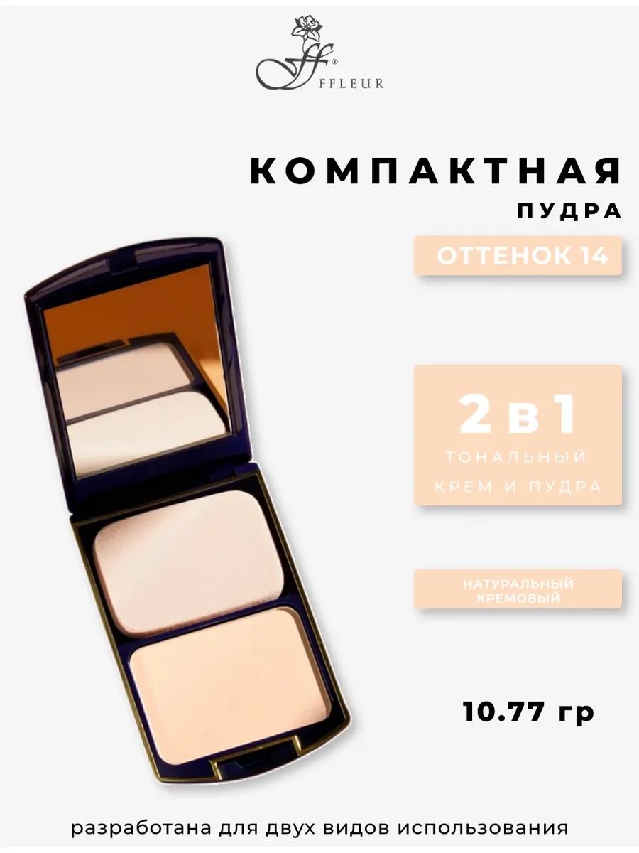 ffleur Пудра компактная 2в1 TWO WAY CAKE №14 Натурально кремовый