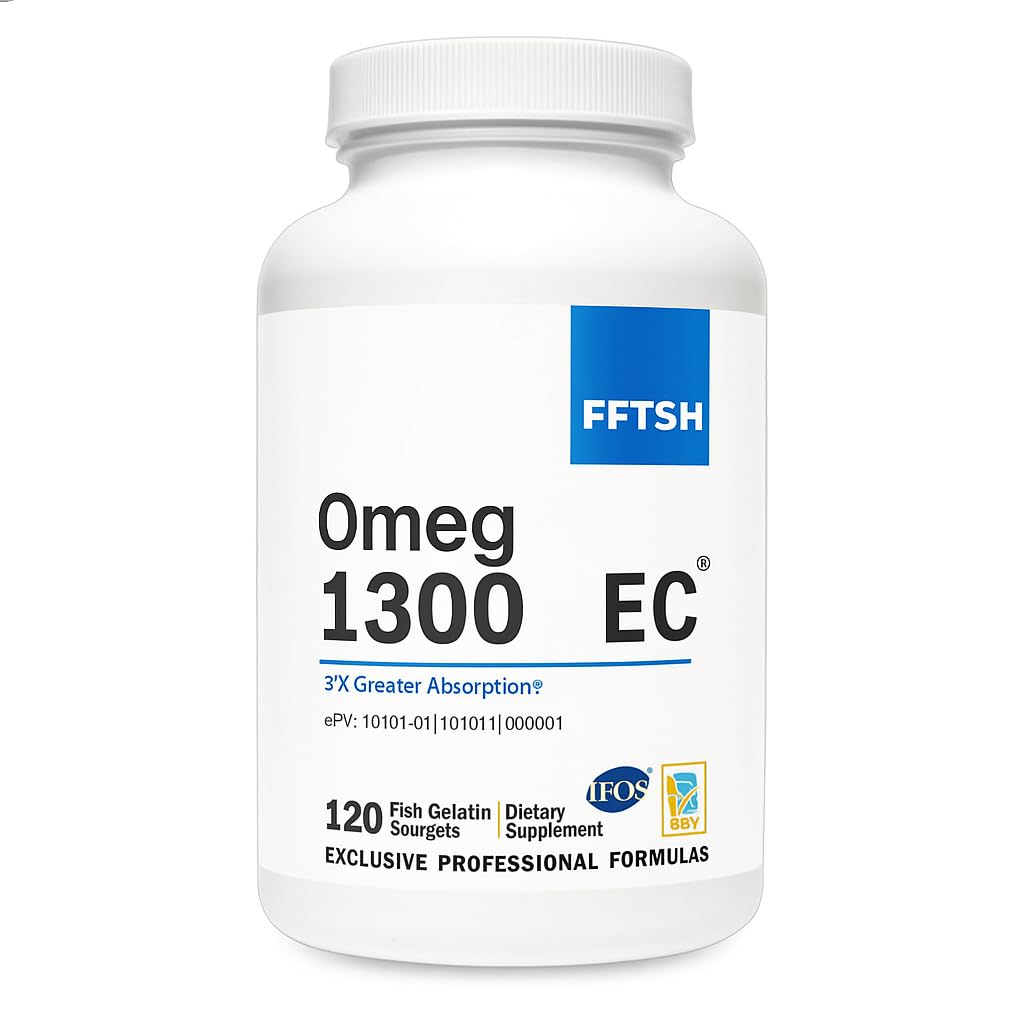Experience advanced nutritional support with FFTSH Omega 1300EC, a high-strength fish-oil supplement designed for optimal absorption and daily balance. Each softgel delivers a concentrated dose of omega-rich lipids, carefully encapsulated in fish gelatin for quality and purity. Crafted with a focus on performance and freshness, FFTSH Omega 1300EC is produced using professional-grade standards. This supplement fits seamlessly into your daily wellness routine to help maintain balanced nutrition and promote overall vitality. Product Highlights: Each bottle contains 120 fish gelatin softgels. Designed for high absorption and consistent quality. Features a purified marine lipid complex. Ideal for individuals seeking to maintain a balanced daily intake of omega nutrients. Manufactured to exclusive professional-formula standards.