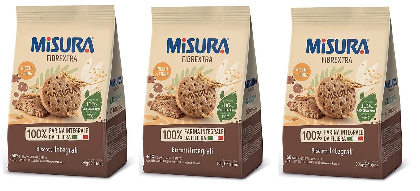 Not your average wholemeal. 100 wholemeal flour in a unique blend of soluble and insoluble fibers for the historic and irreplaceable wholemeal biscuits. Simple, light, and high in fiber. Ingredients: Fibraxtra Selected Sizes 63 (wholemeal flour 58.5 , wheat fiber 2 , oat fiber 2 , chicory inulin 0.5 ) - sugar - sunflower oil - wheat malt flour - free-range chicken eggs 2.5 - skimmed milk - barley and corn flour. Z-extract - Cu. Propellant: ammonium bicarbonate, sodium bicarbonate, salt, and flavorings. May contain soy, sesame, and tree nuts. Nutritional values per 100g: Energy 1874 kJ 152 kJ - Fat 17g of which saturates 1.9g - Carbohydrate 59g of which sugars 20g - Fiber 12g - Protein 8.6g - Salt 0.67g. INGREDIENTS Sizes as desired: 63 (wholemeal flour 58.5 , wheat fiber 2 , oat fiber 2 , chicory inulin 0.5 ) - sugar - sunflower oil - wheat malt flour - free-range chicken eggs 2.5 - skimmed milk powder - barley and corn extract - raising agent: hydrogen bicarbonate - sodium bicarbonate - salt - flavorings. May contain soy, sesame, and nuts.Misura Fibrextra Integrali Lot de 3 biscuits à grains pleins 330 gDESCRIPTION DU PRODUIT DESCRIPTION DU PRODUIT Pas l'intégral habituel. 100 farine complète dans un mélange unique de fibres solubles et insolubles pour les biscuits entiers historiques et irremplaçables. Simple, léger et riche en fibres. Ingrédients : Fibraxtra sélection des dimensions 63 (farine complète 58,5 , fibre de blé 2 , fibre d'avoine 2 , inuline de chicorée 0,5 ) - sucre - huile de tournesol - farine de malt de blé - œufs frais de poulet libre 2,5 - lait écrémé - poudre d'orge et de maïs. Extrait de zextrait - CuAgent propulseur : bicarbonate d'ammonium, bicarbonate de sodium, sel et arômes. Peut contenir du soja, du sésame et des noix. Valeurs nutritionnelles pour 100 g : énergie 1874 kJ 152 kJ - Matières grasses 17 g dont acides gras saturés 1,9 g - Hydrate de carbone 59 g dont sucre 20 g - Fibres x 12 g de protéine 8,6 g de sel 0,67 g. INGRÉDIENTS Dimensions au choix : 63 (farine complète 58,5 , fibre de blé 2 , fibre d'avoine 2 , inuline de chicorée 0,5 ) - sucre - huile de tournesol - farine de malt de blé - œufs frais de poulet libre 2,5 - poudre de lait écrémé - extrait d'orge et de maïs - levé : bicarbond'hydrogenium Bicarbonate de sodium - Sel - arômes. Peut contenir du soja, du sésame et des noix.