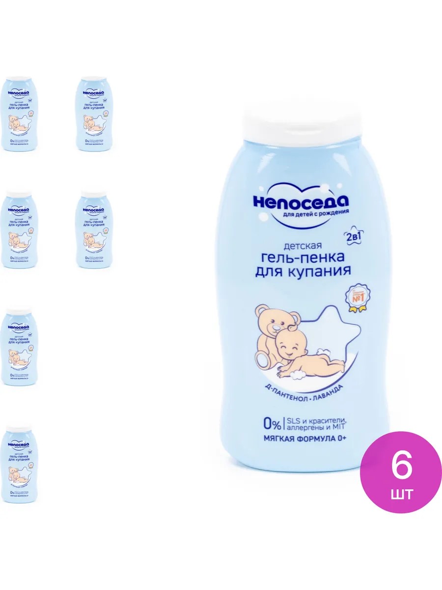 Детская гель-пенка для купания 0+ с лавандой 200мл, 6 шт