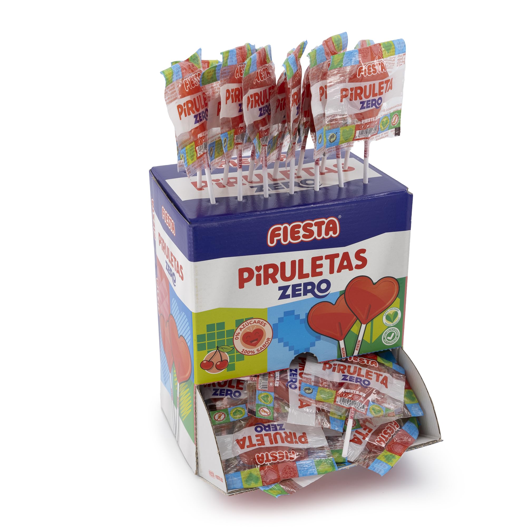 Fiesta FIESTA Zero Candy Lollipops with Heart Shaped Stick Cherry Flavour - Sugar Free - Box of 70 Units