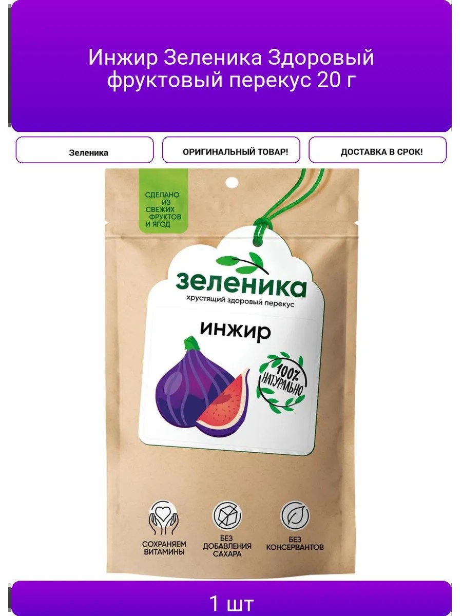 | Комплектация | Инжир Зеленика Здоровый фруктовый перекус 20 г |