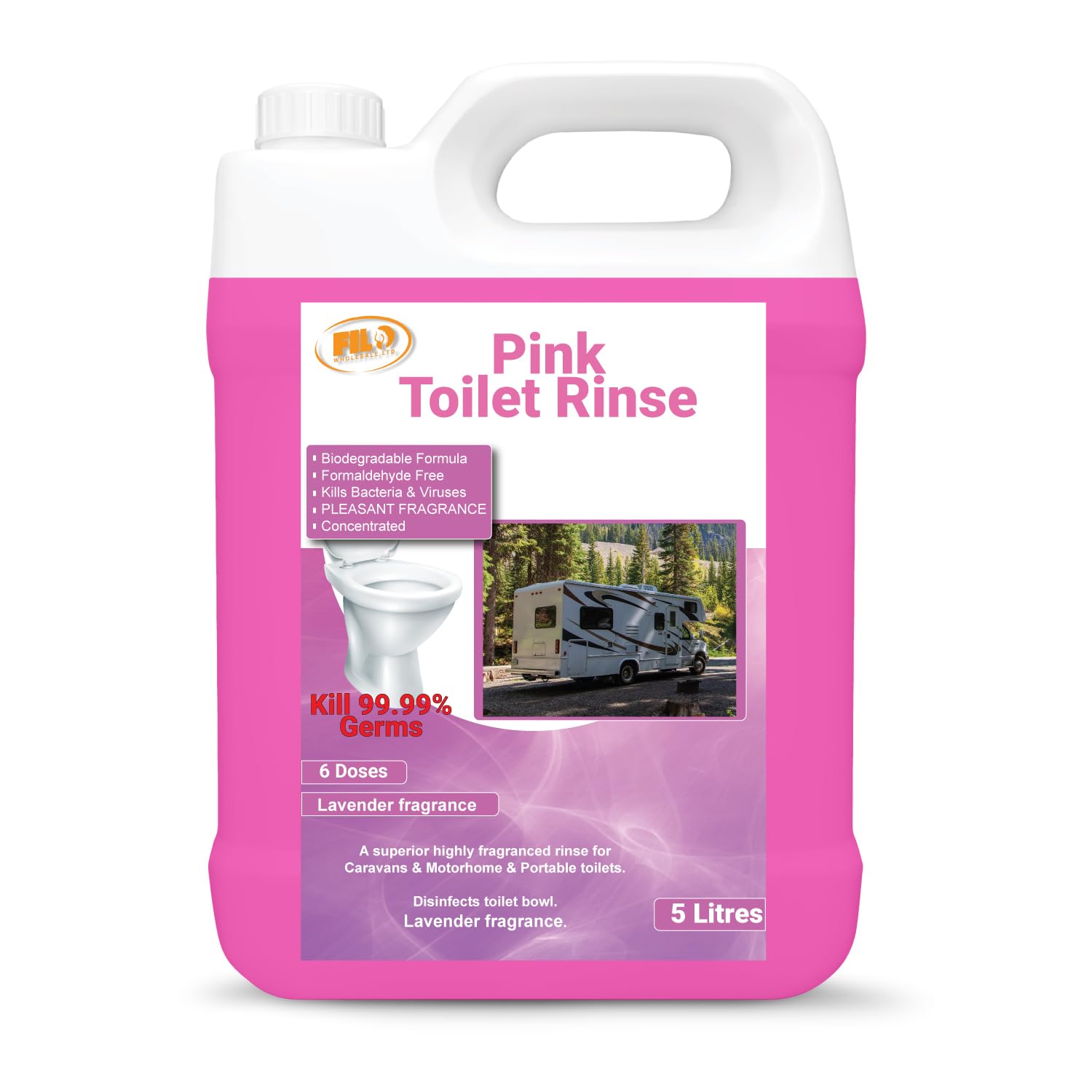 FILO Pink Caravan Toilet Chemical Rinse 5 Liters For Caravans Motorhomes and campervans Eco-Friendly Odour Eliminator and Fluid Cleaner Sanitation Solution Freshener. 1