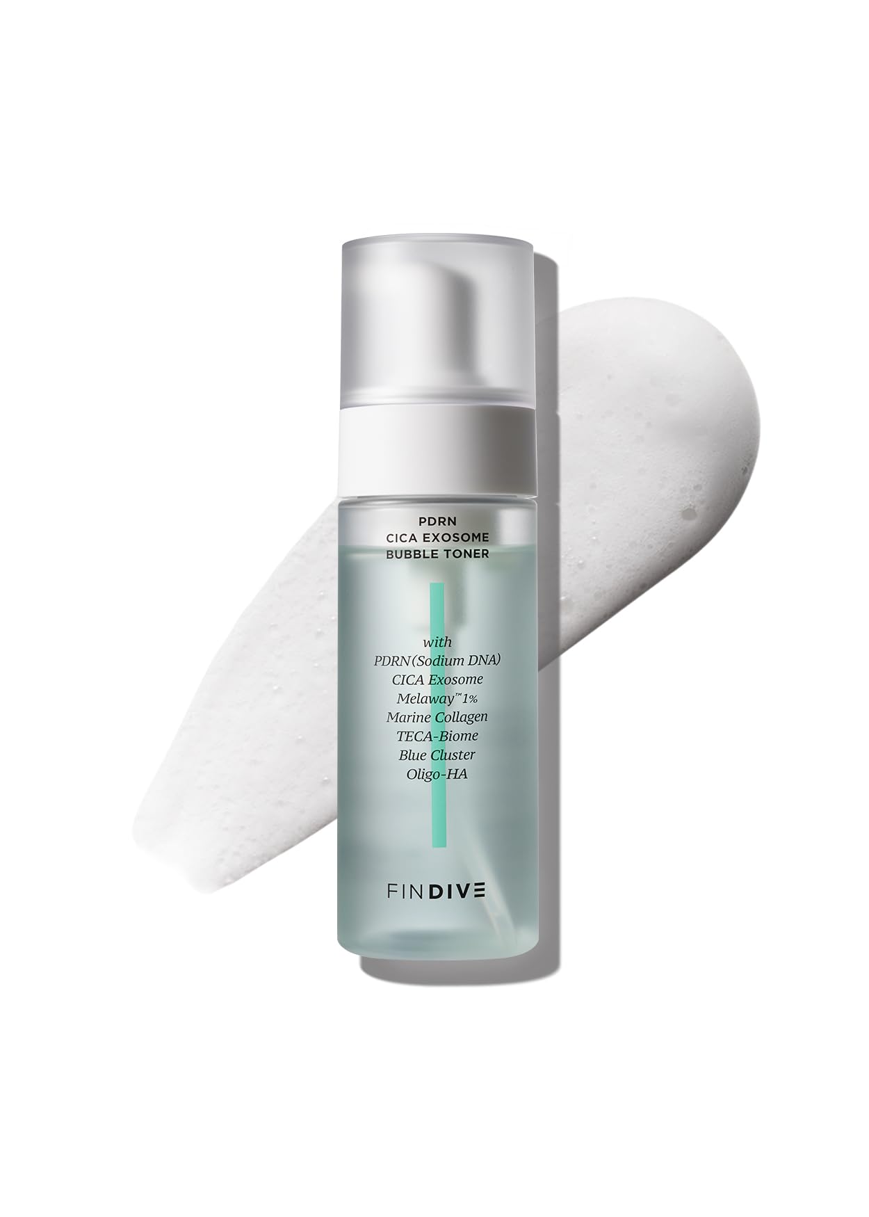 FINDIVE Official PDRN CICA Exosome Bubble Toner, PDRN (Sodium DNA) 1,000ppm, CICA Exosome 1,000ppm, Marin Collagen, Soothes, Regenerates Skin, Korean Skincare 5.07fl.oz