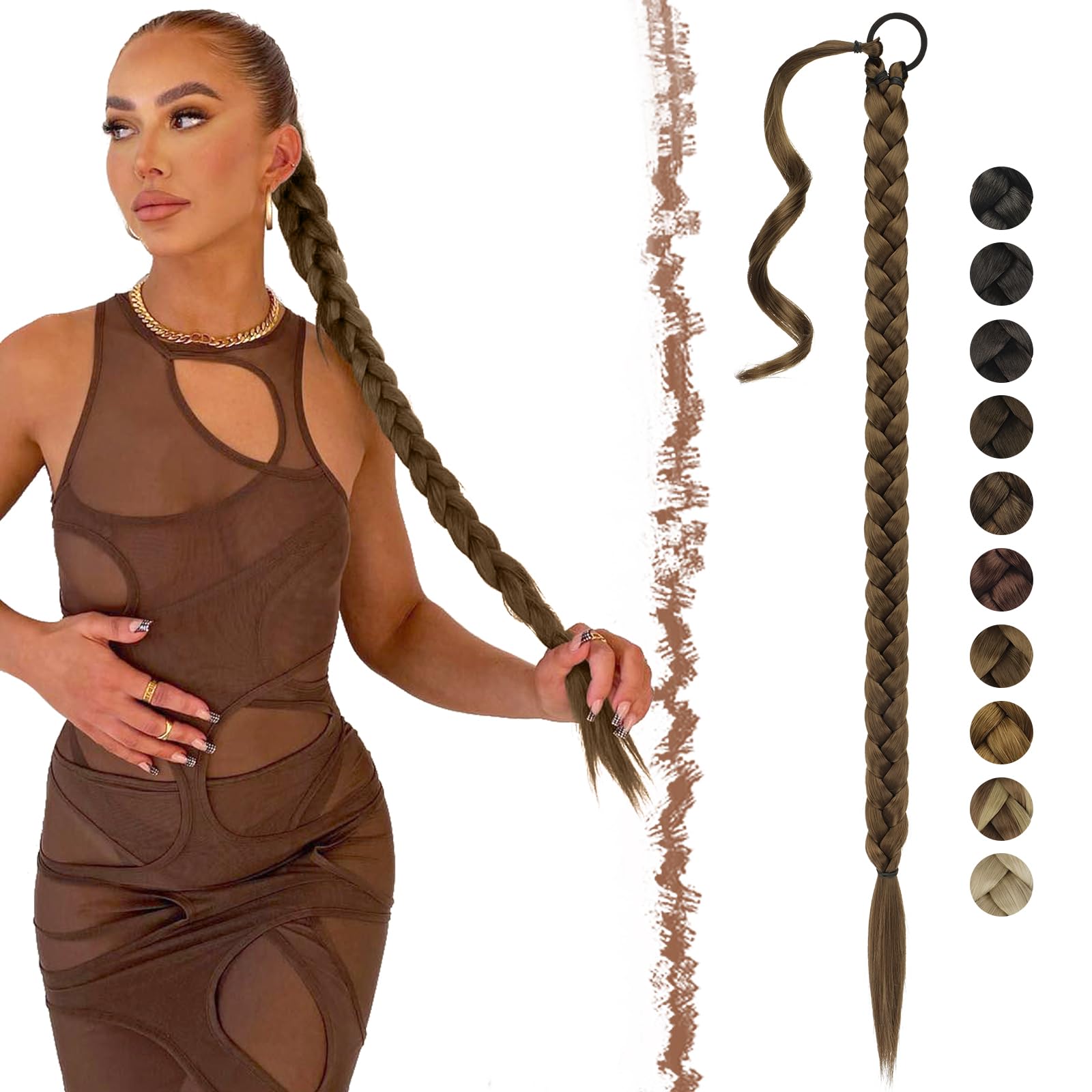 Customer support: If there are any questions about our ponytail extension with hair tie, you can consult us at any time.Or if the ponytail does not meet your expectations, then we are always helped here.100% money-back guarantee.NO RISK!.Immediate length: This long braids is easy to use and quickly install, both beginners and experts can transform your hair into the top hair trends with this ponytail within minutes.The braided ponytail extension are the easiest way to give your hair length, to change your hair color and style and thus give you a lively, stylish and versatile new look.Hair material: Our braided ponytails hair extension are made of high -quality, heat -resistant synthetic fibers that can be washed, trimmed and lured.It is soft and smooth, so that the ponytail looks like your own hair and also feels like that.DIY fun: This ponytail extension with hair tie is delivered without braided with 1 additional wrap-around.You can braid them for every style: fish tail braids, rope braids, bubble braids, twist braids, 3-stranded braids or simply use as a straight ponytail.You can also beautify it with gemstones and decorations.Product specifications: long braided ponytail hair part, 3 sizes available: 26 inch/65cm, 140g (23 inch/55cm after lichen);30 inches/75cm, 160g (27 inches/65cm after lichen);34 inches/85cm, 170g (30 inches/75cm after lichens).Kundenbetreuung: Wenn es irgendwelche Fragen zu unseren pferdeschwanz verlängerung mit haargummi gibt, können Sie uns jederzeit konsultieren. Oder wenn der Pferdeschwanz Haarteil nicht Ihren Erwartungen entspricht, dann sind wir immer hier zu helfen. 100% Geld-zurück-Garantie. KEIN RISIKO!. Sofortige Länge: Dieser lange zöpfe pferdeschwanz ist einfach anzuwenden und schnell zu installieren, sowohl Anfänger als auch Experten können ihr Haar mit diesem Pferdeschwanz innerhalb von Minuten in die Top-Haartrends verwandeln. Die geflochtenen ponytail extension sind der einfachste Weg, Ihrem Haar Länge zu verleihen, Ihre Haarfarbe und Ihren Stil zu verändern und Ihnen so einen lebendigen, stilvollen und vielseitigen neuen Look zu verleihen. Haar Material: Unsere geflochten Pferdeschwänze haarverlängerung sind aus hochwertigen, hitzebeständigen Kunstfasern hergestellt, die gewaschen, getrimmt und gelockt werden können. Es ist weich und glatt, so dass der Pferdeschwanz wie Ihr eigenes Haar aussieht und sich auch so anfühlt. DIY-Spaß: Dieser pferdeschwanz verlängerung mit haargummi wird ungeflochten mit 1 zusätzlichen Wrap-Around-Stück geliefert. Du kannst sie zu jedem Stil flechten: Fischschwanz zöpfe, Seil zöpfe, bubble braids, twist braids, 3-strängige zöpfe oder einfach als geraden Pferdeschwanz verwenden. Sie können ihn auch mit Schmucksteinen und Dekorationen verschönern. Produkt Spezifikationen: Lange geflochten pferdeschwanz haarteil, 3 Größen erhältlich: 26 Zoll/65cm, 140g (23 Zoll/55cm nach dem Flechten); 30 Zoll/75cm, 160g (27 Zoll/65cm nach dem Flechten); 34 Zoll/85cm, 170g (30 Zoll/75cm nach dem Flechten).FESHFEN Braid Extensions Pferdeschwanz Verlängerung mit Haargummi, 65 cm Lang Ponytail Geflochten Kunsthaar Haarverlängerung Pferdeschwanz zum Einflechten Zopf Haarteil für Damen Hellbraun 65 cm neu-Hellbraun
