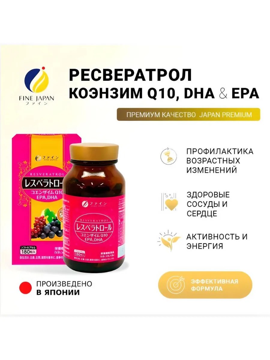 Fine Japan FINE Ресвератрол, коэнзим Q10, омега, для женщин и мужчин