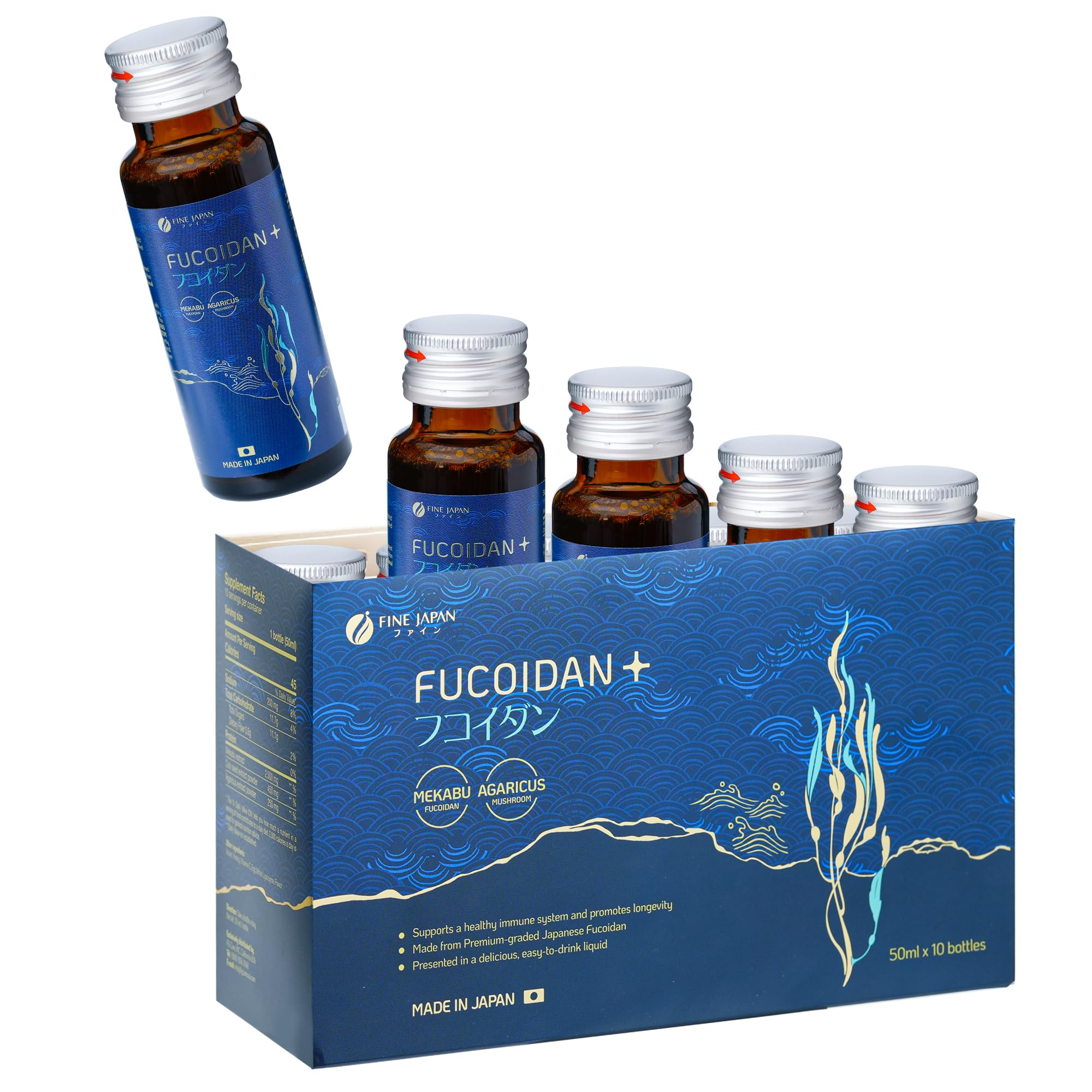 FINE JAPAN Fucoidan Plus Drink Premium Brown Seaweed Supplement with Seaweed Extract Agaricus Mushroom & Coix Seed 10 Bottles (50ml Each)