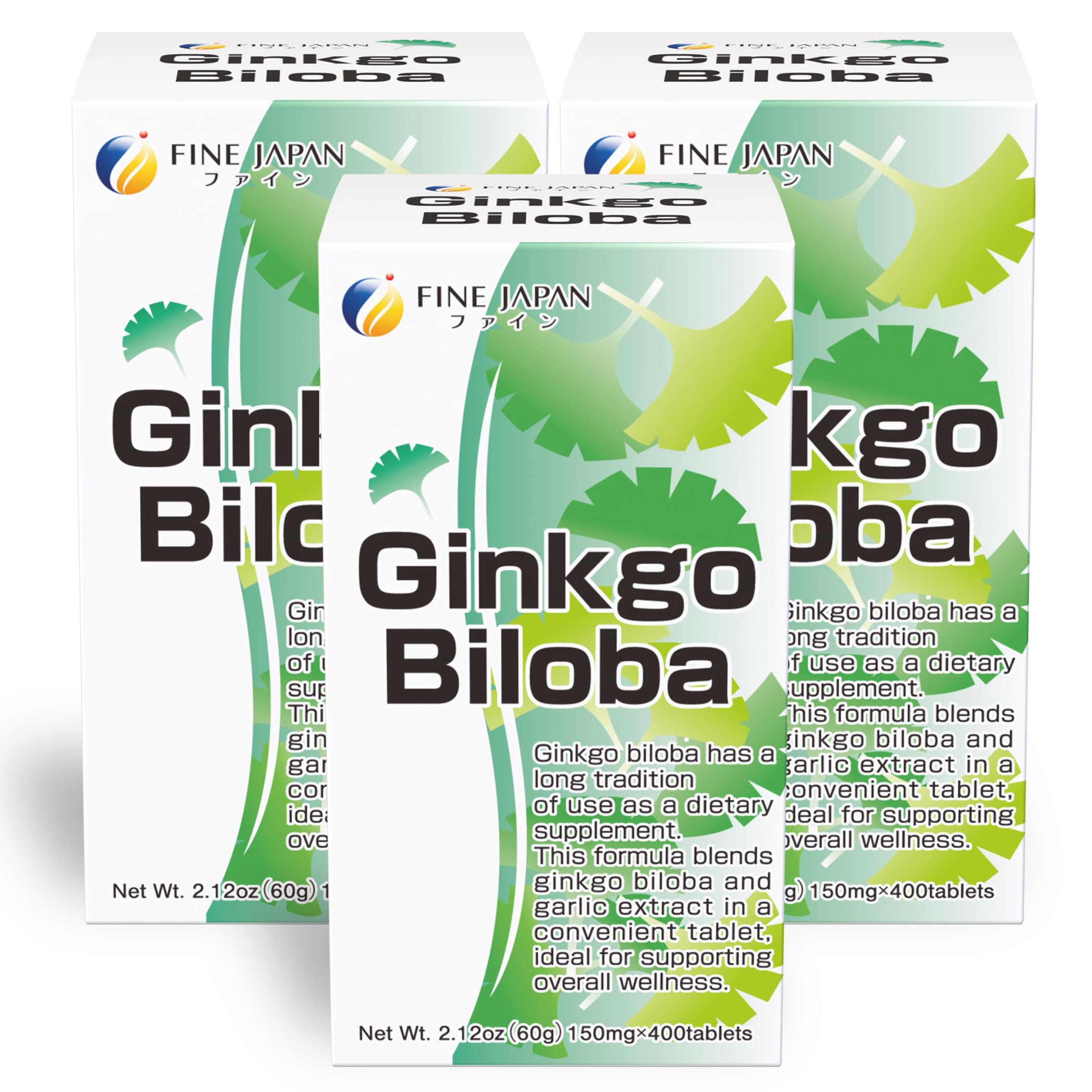 FINE JAPAN Ginkgo Biloba Leaf Extract Tablets/400 Tablets/3 Bottles/with Garlic Extract and B Vitamins for Daily Vitality Support 60g(150mg 400tablets)