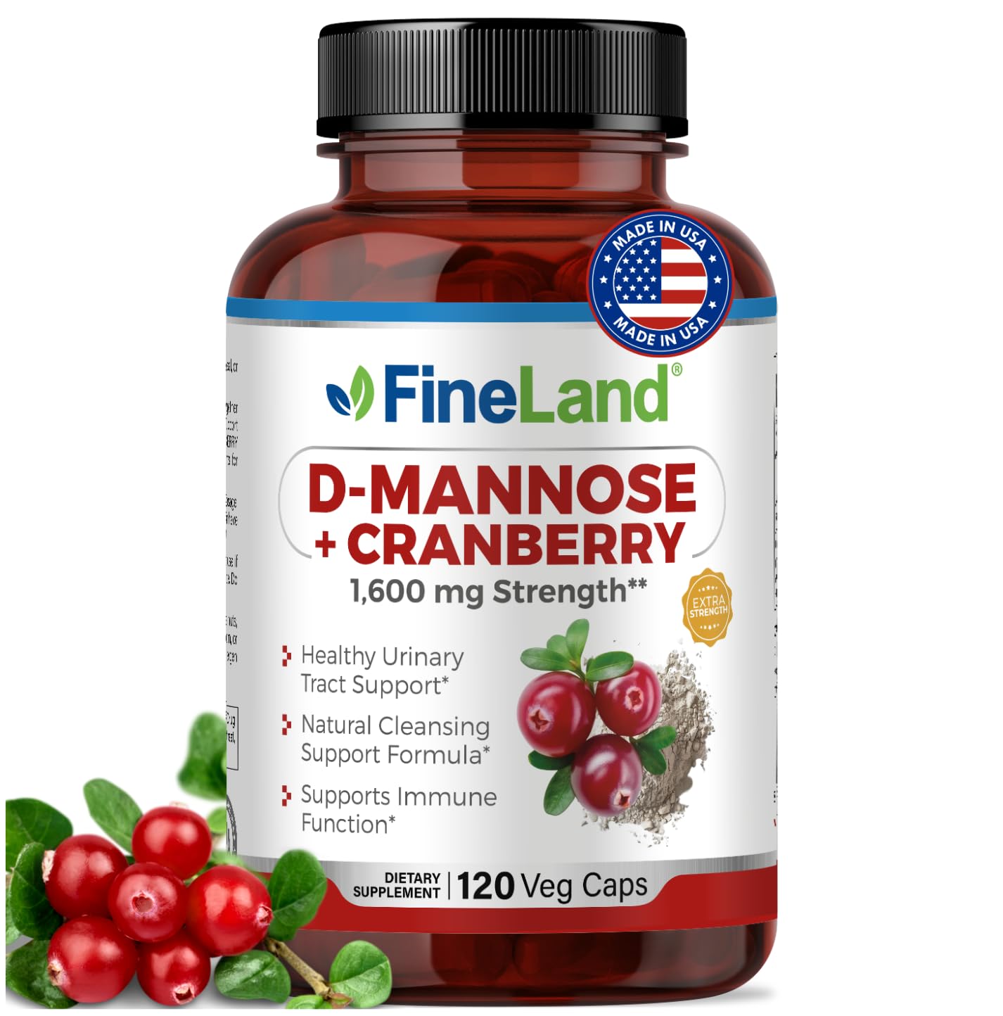 FineLand D-Mannose + Cranberry 1600mg per Serving 120 Vegan Capsules Urinary Tract & Bladder Health Support Non-GMO Gluten-Free Made in USA