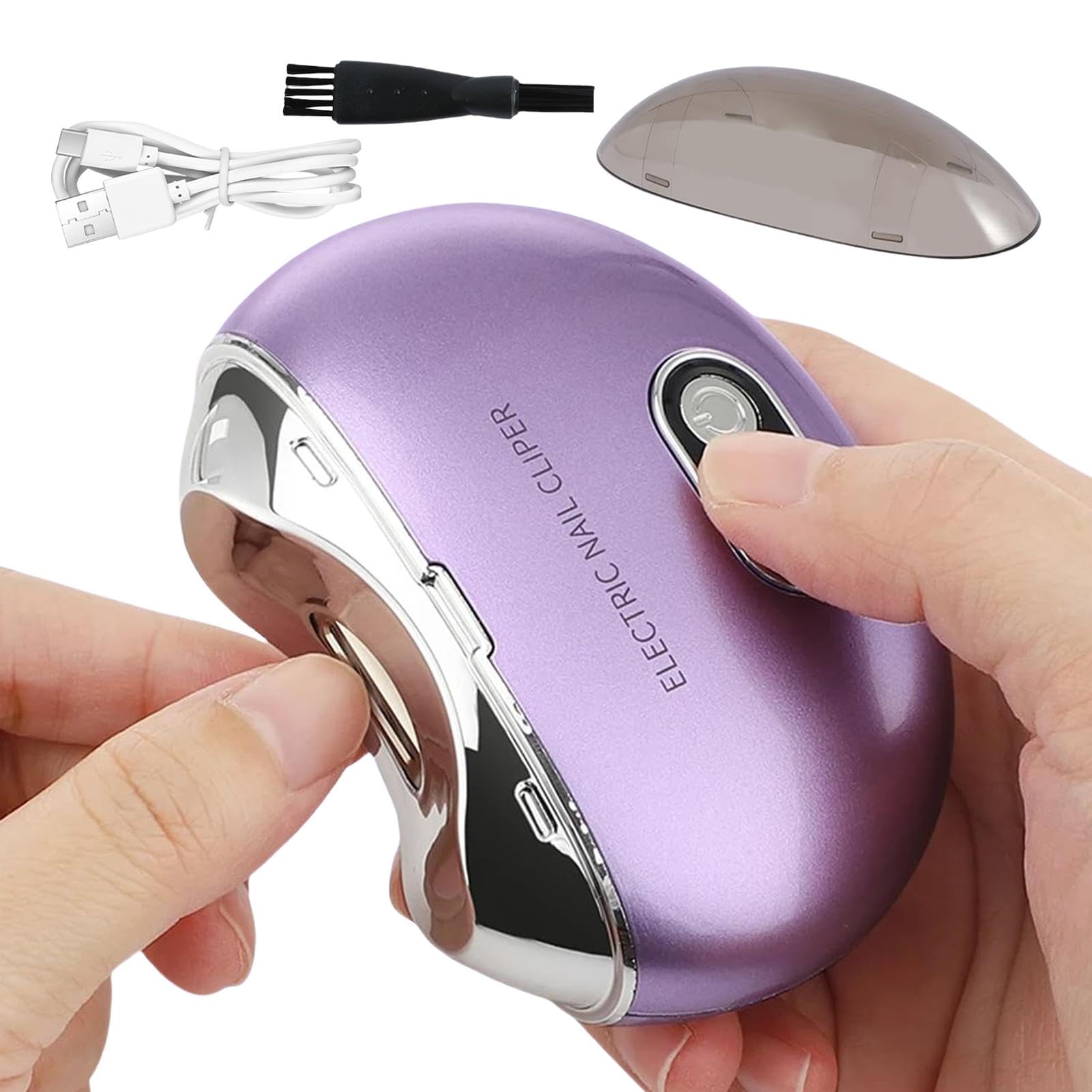 Fingernail Cutters for Seniors - Safety Fingernail Trimmer | Nail Scraps Storage Clipper Rechargeable LCD Digital Display Clipper Light & 3 Speeds for Children Seniors Purple