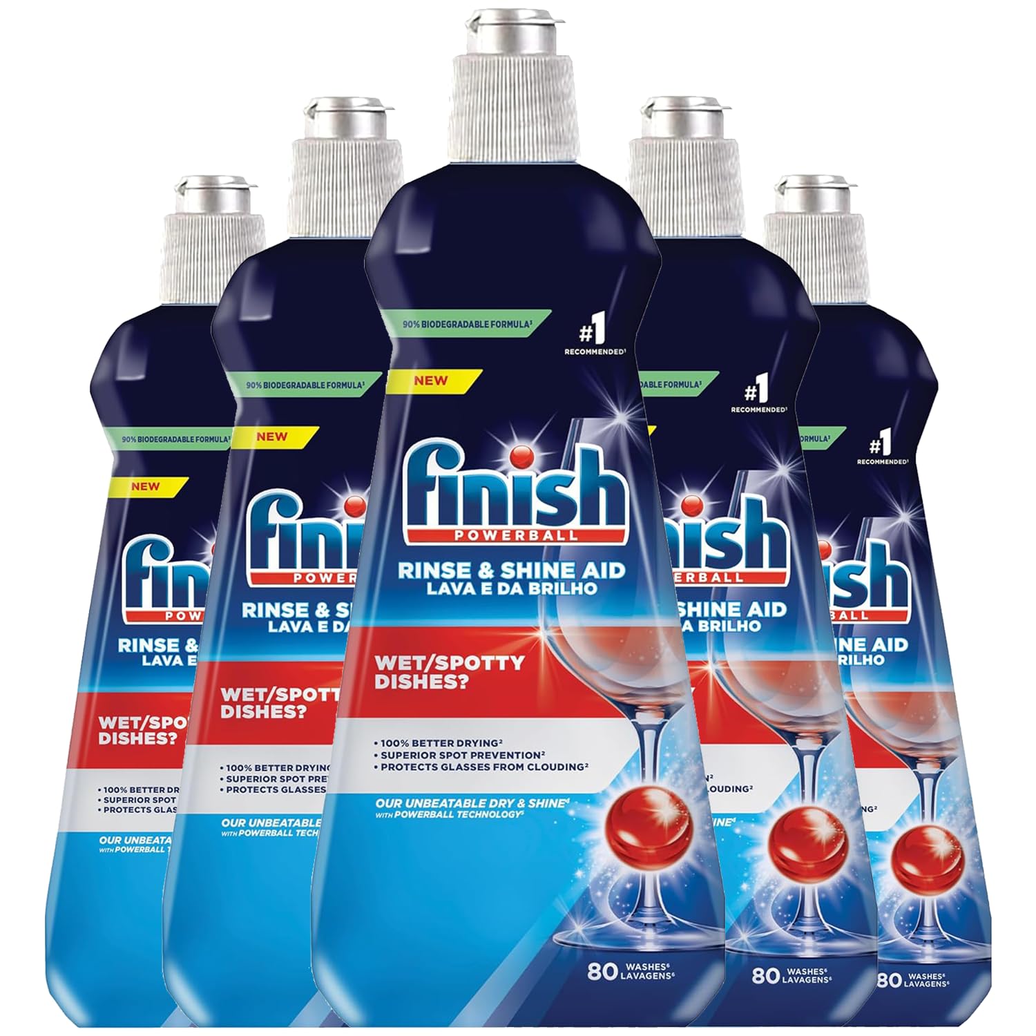 Finish Dishwasher Rinse & Shine Aid | For Drier Glasses and Spot Prevention | Pack of 5 400ml each | Packaging May Vary