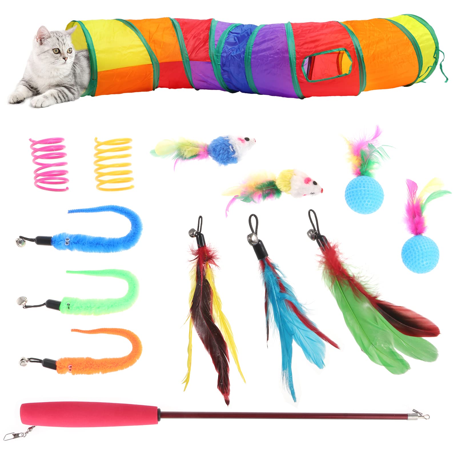 Description: The range of 14 cat toys helps to release the cat's energy, stabilize its nervous emotions, increase your movement in order to achieve weight loss and stay healthy.A great toy set for your cat. Product list: A total of 14 PCs 1. Color spring 3 2. caterpillar 3 3. Colorful mouse 2 4. Spring 2 5. Golf spring 2 6. Collectable cat tunnel 1 7. Funny cat stick 1Great gift for catsDifferent toys ensure that your cat stays fresh.Funny cat mouse toys attract your cats and stimulates the hunting instinct.The best Christmas and birthday cat toy gift for your cats and all cat lovers.Play with your cat.Keep your cat healthyDifferent cat toys keep your cats busy when you are gone, help kitten, develop and coordinate your body.To release the cats, stabilizes the nervous mood, increases the movement to lose weight and stay healthy.High -quality materialsEvery cat toy consists of high -quality materials, such as, they are non -toxic and tasteless, which the cat does not harm and can be played safely for cats.Interactive cat toys setThe 14 piece of kitten toys, including fold -up long tunnels, cat stipulation, fluffy mouse and mice, different balls and bells, etc.Beschreibung: Das Sortiment von 14 Katzenspielzeugen hilft, die Energie der Katze freizusetzen, ihre nervösen Emotionen zu stabilisieren, ihre Bewegung zu erhöhen, um Gewichtsverlust zu erreichen und gesund zu bleiben. Ein großartiges Spielzeugset für Ihre Katze. Produktliste: Insgesamt 14 PCS 1. Farbe Feder 3 2. Raupe 3 3. Bunte Maus 2 4. Frühling 2 5. Golf-Feder 2 6. Zusammenklappbarer Katzentunnel 1 7. Lustiger Katzenstock 1Tolles Geschenk für KatzenVerschiedene Spielzeuge sorgen dafür, dass Ihre Katze frisch bleibt. Lustiges Katzenmäuse-Spielzeug zieht Ihre Katzen an und stimuliert den Jagdinstinkt. Das beste Weihnachts- und Geburtstags-Katzenspielzeug Geschenk für Ihre Katzen und alle Katzenliebhaber. Spielen Sie mit Ihrer KatzeMit dem lustigen katzentunnel und dem Federspielzeug können Sie mit Katzen spielen und Vertrauen und Kameraderie zwischen Ihnen und Ihren Katzen aufbauen. Halten Sie Ihre Katze GesundVerschiedene Katzenspielzeuge halten Ihre Katzen beschäftigt, wenn Sie weg sind, helfen Kätzchen, ihren Körper zu entwickeln und zu koordinieren. Zur Freisetzung der Katzen, stabilisiert die nervöse Stimmung, erhöht die Bewegung, um Gewicht zu verlieren und gesund zu bleiben. Hochwertige MaterialienJedes Katzen Spielzeug besteht aus hochwertigen Materialien, wie, sie sind ungiftig und geschmacksneutral, was der Katze nicht schadet und sicher für Katzen gespielt werden kann. Interaktives Katzenspielzeug SetDas 14 Stück Kätzchenspielzeug, einschließlich zusammenklappbarem langem Tunnel, Katzenreizstab, flauschiger Maus und Mäusen, verschiedenen Bällen und Glocken, usw.Fippy 14 Stück Katzenspielzeug Set mit Tunnel, Interaktives Katzenspielzeug mit Bälle Federspielzeug Plüschspielzeug, Variety Katzenspielzeug für Kitty Katzen