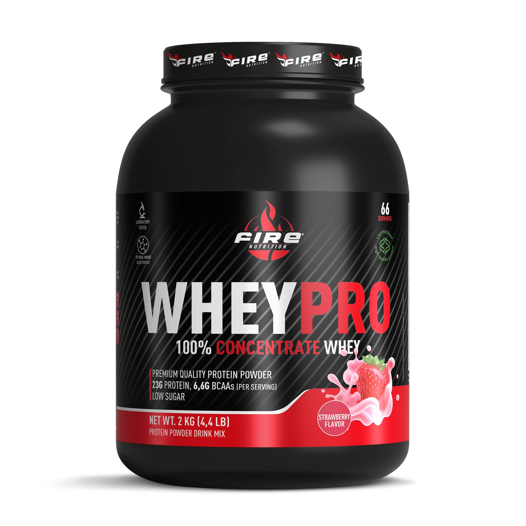 Fire Nutrition Whey PRO 2kg (4.4LB) Strawberry - 100% Whey Concentrate - 100% Whey Concentrate - Whey Protein - Muscle Recovery