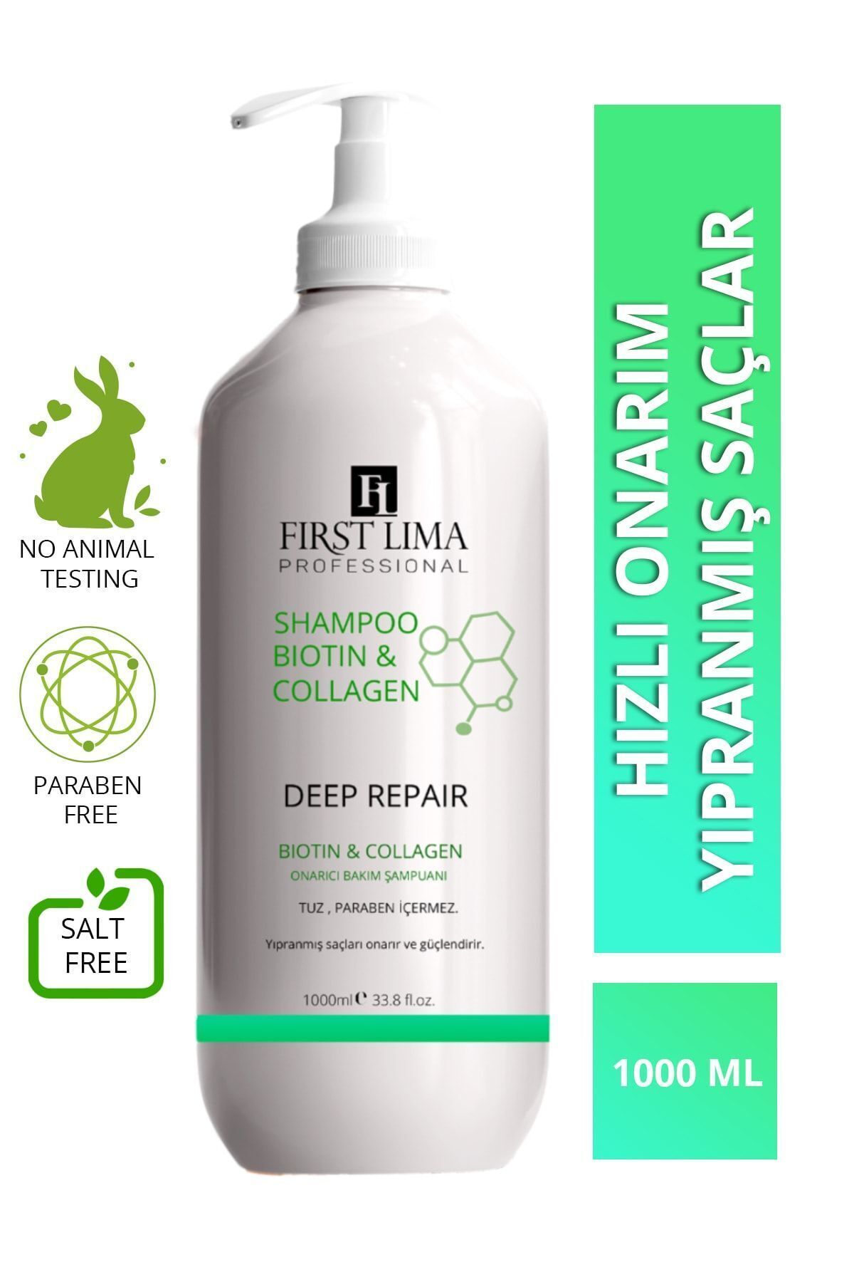 First Lima Professional Biotin & Collagen Shampoo - Strong Effect Against Hair Loss Repair Care and Vitality 1000 ml