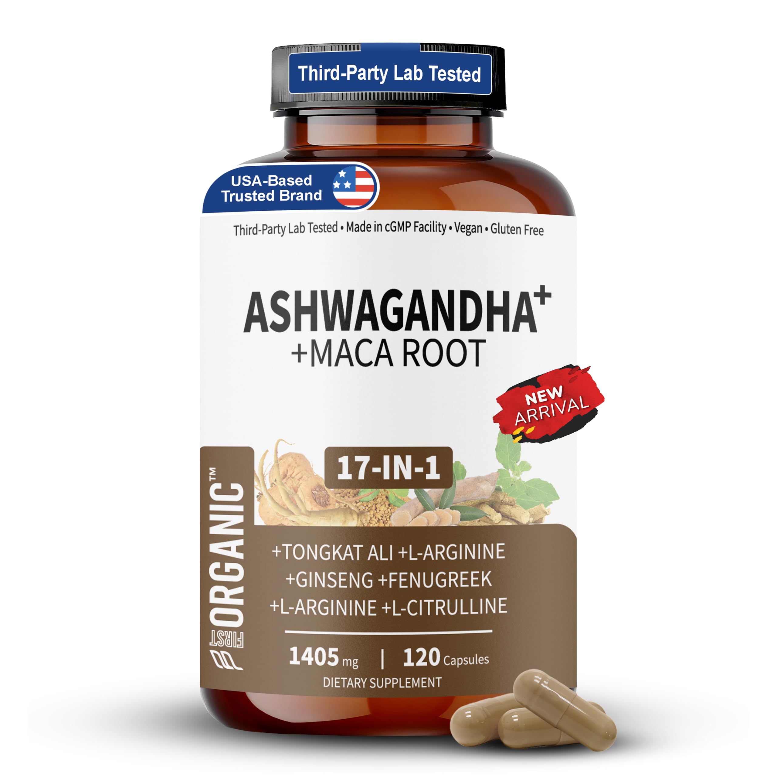 FIRSTORGANIC Premium Ashwagandha 17-in-1 Complex | Botanical Blend with Maca L-Arginine & Tribulus | Daily Herbal Formula | Third-Party Lab Tested Vegan Non-GMO Gluten-Free 120 Capsules