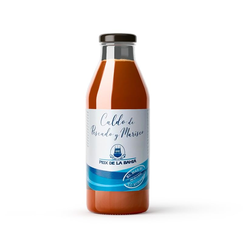Peix de la Baie's Fish and Seafood Broth is an excellent quality concentrate, ideal for preparing meals of up to 7 or 8 servings. Made according to a new recipe and presented in a practical 950 ml glass container, it offers unbeatable value for money. This new product joins the Punta Aljibe broth family, thanks to the numerous suggestions from its consumers and customers. Enjoy a delicious seafood flavor in your dishes with this high-quality concentrated broth.Guaranteed quality: Product of the renowned Peix de la Bahia brand, synonymous with excellence in broths and soups. Culinary versatility: Ideal for various fish and seafood dishes, providing a touch of authentic flavor. Improved recipe: Developed with a new recipe based on consumer suggestions, offering a delicious taste. Optimal concentration: Broth with exceptional concentration, perfect for preparing up to 7 to 8 portions of food. New format: Fish and seafood broth in a 950 ml glass bottle, offering excellent value for money. Le bouillon de poisson et de fruits de mer de Peix de la baie est un concentré d'excellente qualité, idéal pour préparer des repas jusqu'à 7 ou 8 portions. Élaboré selon une nouvelle recette et présenté dans un emballage en verre pratique de 950 ml, il offre un rapport qualité-prix imbattable. Ce nouveau produit s'ajoute à la famille de bouillons Punta Aljibe, grâce aux nombreuses suggestions de ses consommateurs et clients. Profitez d'une délicieuse saveur de fruits de mer dans vos plats avec ce bouillon concentré de haute qualité.Qualité garantie : produit de la célèbre marque Peix de la Bahia, synonyme d'excellence dans les bouillons et les soupes. Polyvalence culinaire : idéal pour divers plats de poissons et fruits de mer, apportant une touche de saveur authentique. Recette améliorée : élaboré avec une nouvelle recette après les suggestions des consommateurs, offrant un goût délicieux. Concentration optimale : bouillon avec une concentration exceptionnelle, parfait pour préparer jusqu'à 7 à 8 portions de nourriture. Nouveau format : bouillon de poisson et fruits de mer dans une bouteille en verre de 950 ml, offrant un excellent rapport qualité prix.