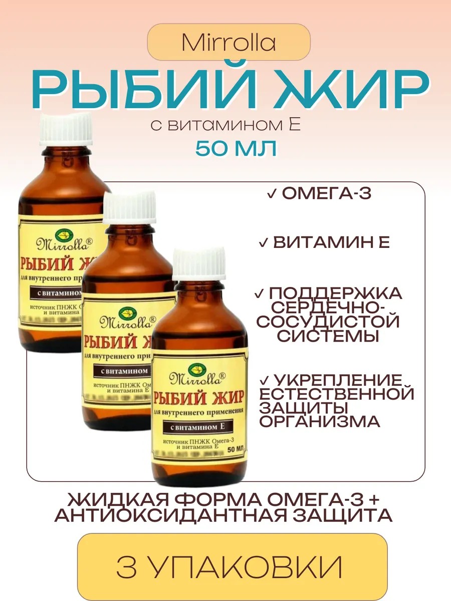 | Полное наименование товара | Мирролла рыбий жир с витамин е 50 мл |