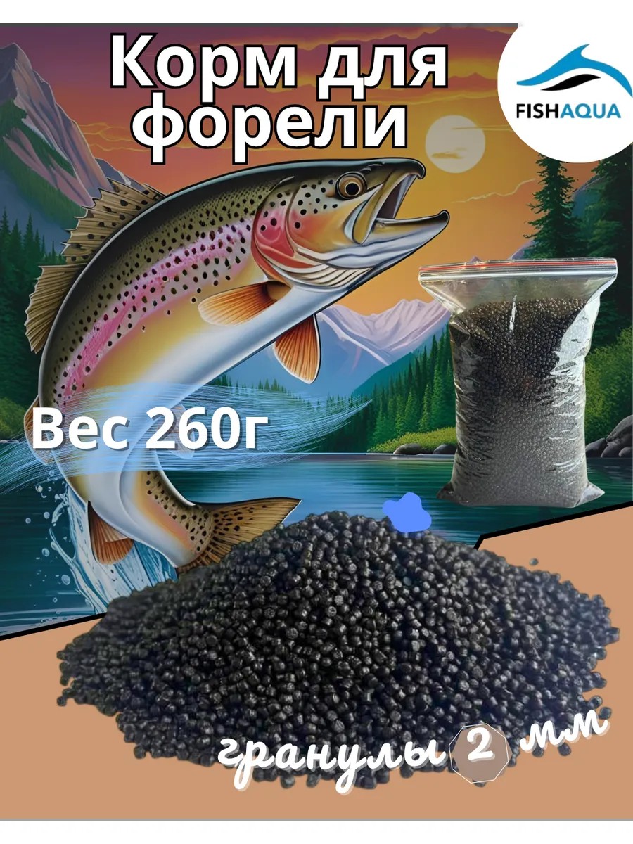 fishaqua Корм для форели 260г тонущий продукционный гранулы 2мм