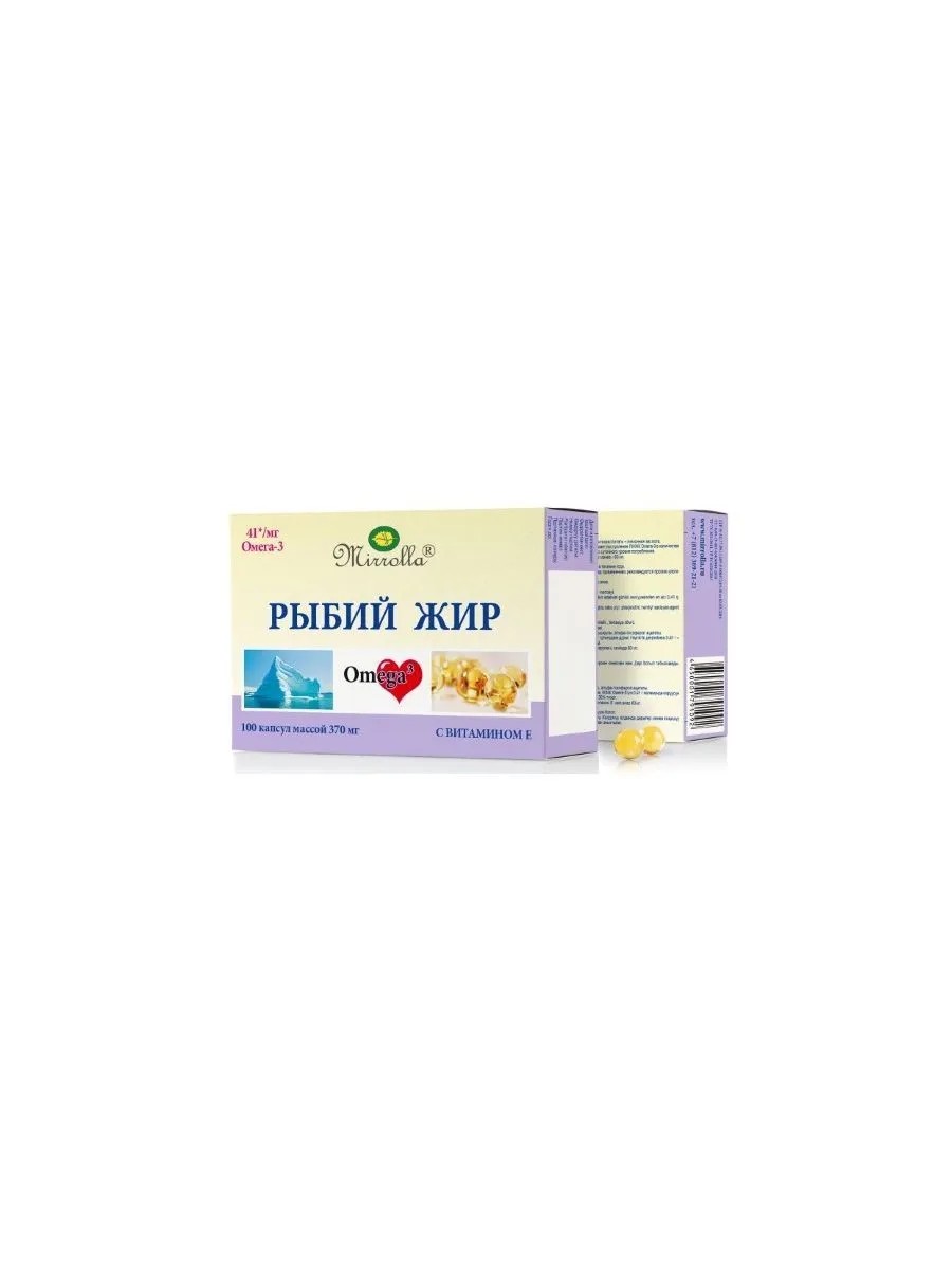 рыбий жир мирролла с витамин е n100 капс. дополнительный истоник пнжк омега-3. в качестве биологически активной добавки к пище. рыбий жир пищевой, витамин е, оболочка /желатин, глицерин/. для реализации населению в качестве биологически активной добавки к пище -дополнительного источника полиненасыщенных жирных кислот омега-3 и витамина е. (далее согласно приложению). биологически активные компоненты, не менее: пнжк омега 3 - 11,0%, витамин е - 0,083%. -