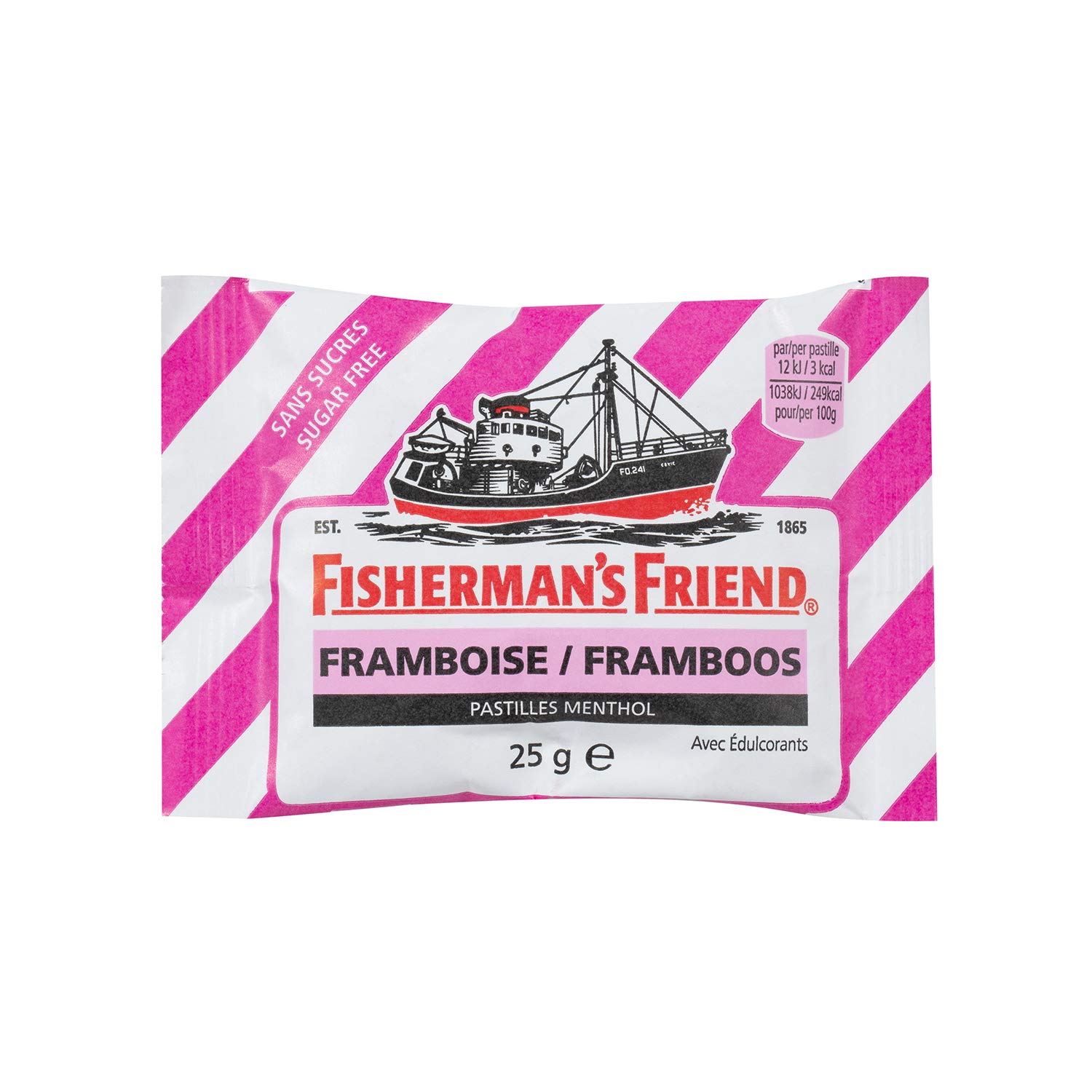Fisherman's Friend Raspberry Menthol sugar free Strength and softness Fisherman's Friend Raspberry is a perfect balance between the strength of menthol and the unique sweetness of raspberry. Put one on your tongue. Let it melt. Inhale deeply. The pastilles are the ideal ally for all lovers of strong and fragrant sensations, with a touch of sweetness that makes all the difference. Sugar-free pastilles, to taste without moderation Raspberry Menthol pastilles are sugar-free. Fisherman's Friend even invented the first sugar-free lozenges in 1979! Enjoy their taste and intensity without guilt, wherever and whenever you want. Fisherman's Friend follows you everywhere Fisherman's Friend pellet sachets can be carried anywhere, in a jacket or pants pocket, or in a handbag. They will bring you comfort at any time of the day, at work, on a walk, or after a coffee to keep your breath fresh. Everyone has their own Fisherman's Friend Fisherman's Friend is a whole family of pastilles, combining strength, softness and freshness. Depending on taste and your desires, you can opt for the sugar-free lozenges from the range, recognizable by their striped sachet, such as Licorice, Eucalyptus Menthol, Mint or even Sweet Mint Chloro lozenges. For a moment of intense comfort, also find the original sweet pastilles. A friend in your pocket Pharmacist James Lofthouse created Fisherman's Friend lozenges in 1865, for sailors who took to the sea in all weathers. The strength of the pellets provided relief during prolonged exposure to hostile conditions on the high seas. INGREDIENTS "Sweeteners: sorbitols, sucralose, acesulfame-K. Flavorings. Anti-caking agent: magnesium salts of fatty acids. Contains sorbitols (94 g 100 g)" DIRECTIONS FOR USE RAS SAFETY WARNING "excessive consumption may have laxative effects. Do not give to children under 5 years old" A FRIEND IN YOUR POCKET: Pharmacist James Lofthouse created Fisherman's Friend lozenges in 1865 for sailors who went to sea in all weathers. The strength of the lozenges provided relief during prolonged exposure to the hostile conditions on the high seas. Today, the pure strength of Fisherman's Friend has won over the world. A FISHERMAN'S FRIEND FOR EVERYONE: Fisherman's Friend is a whole family of lozenges, combining strength, sweetness, and freshness. Depending on your tastes and desires, you can opt for the sugar-free lozenges in the range, recognizable by their striped bag, such as the Licorice, Eucalyptus Menthol, Mint, or Chloro Sweet Mint lozenges. For a moment of intense comfort, also discover the original sweet lozenges. FISHERMAN'S FRIEND FOLLOWS YOU EVERYWHERE: Fisherman's Friend lozenges can be taken anywhere, in a jacket pocket, pants pocket, or handbag. They will bring you comfort at any time of day, at work, on a walk, or after a coffee to keep your breath fresh. SUGAR-FREE LOZENGES, TO ENJOY WITHOUT MODERATION: Raspberry Menthol lozenges are sugar-free. Fisherman's Friend even invented the first sugar-free lozenges in 1979. Enjoy their taste and intensity without guilt, wherever and whenever you want. STRENGTH AND SWEETNESS: Fisherman's Friend Raspberry is a perfect balance between the strength of menthol and the unique sweetness of raspberry. Place one on your tongue. Let it melt. Inhale deeply. Lozenges are the ideal ally for all lovers of strong and fragrant sensations, with a touch of sweetness that makes all the difference. Fisherman's Friend Framboise Menthol sans sucres Force et douceur Fisherman's Friend Framboise est un parfait équilibre entre la force du menthol et la douceur unique de la framboise. Mettez-en un sur votre langue. Laissez fondre. Inspirez profondément. Les pastilles sont l'allié idéal de tous les amateurs de sensations fortes et parfumées, avec une touche de douceur qui fait toute la différence. Pastilles sans sucres, à goûter sans modération Les pastilles Framboise Menthol sont sans sucres. Fisherman's Friend a même inventé les premières pastilles sans sucres en 1979 ! Profitez de leur goût et de leur intensité sans culpabilité, où et quand vous voulez. Fisherman's Friend vous suit partout Les sachets de pastilles Fisherman's Friend s'emportent partout, dans une poche de blouson, de pantalon, ou dans un sac à main. Ils vous apporteront un réconfort à tout moment de la journée, au travail, en ballade, ou après un café pour garder une haleine fraîche. A chacun son Fisherman's Friend Fisherman's Friend, c'est toute une famille de pastilles, alliant force, douceur et fraîcheur. Selon les goûts et selon vos envies, vous pouvez opter pour les pastilles sans sucres de la gamme, reconnaissables à leur sachet à rayures, comme les pastilles Réglisse, Eucalyptus Menthol, Menthe ou encore Menthe douce Chloro. Pour un moment de réconfort intense, retrouvez également les pastilles sucrées originales. Un ami dans la poche Le pharmacien James Lofthouse créa les pastilles Fisherman's Friend en 1865, pour les marins qui prenaient la mer par tous les temps. La force des pastilles les soulageait lors d'expositions prolongées aux conditions hostiles en haute mer. INGRÉDIENTS "Édulcorants: sorbitols, sucralose, acésulfame-K. Arômes. Antiagglomérant: selsde magnésium d'acides gras. Contient des sorbitols (94 g 100 g)" MODE D'EMPLOI RAS AVERTISSEMENT DE SÛRETÉ "une consommation excessive peut avoir des effets laxatifs. Ne pas donner aux enfants de moins de 5 ans" UN AMI DANS LA POCHE : Le pharmacien James Lofthouse créa les pastilles Fisherman's Friend en 1865, pour les marins qui prenaient la mer par tous les temps. La force des pastilles les soulageait lors d'expositions prolongées aux conditions hostiles en haute mer. Aujourd'hui, la force à l'état pur de Fisherman's Friend a su séduire le monde entier. À CHACUN SON FISHERMAN'S FRIEND : Fisherman's Friend, c'est toute une famille de pastilles, alliant force, douceur et fraîcheur. Selon les goûts et selon vos envies, vous pouvez opter pour les pastil