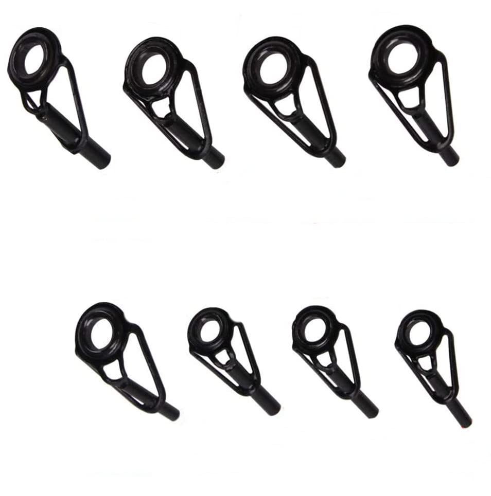 Saltwater Fishing Rod Tip Repair Kit -- This is an essential fishing rod repair kit needed put in your tackle box, the flared frame make it ideal for all kinds of fishing rod repair and fishing pole repair, great gift for fishing anglers. Full Sizes Rod Tip Repair Kit -- 8pcs fishing rod tips in different sizes. Each size 1pcs included, ultra high cost performance, Size details: Rod Tips ID x Guides Ring ID: 1.8x6, 2.0x6#, 2.2x6, 1.8x8, 2.0x8, 2.2x8, 2.4x8, 2.6x8. Easy to Use -- Take off the old rod top tips and replace with our new rod tips, glue it with fishing rod glue(glue not included), easy repair your saltwater fishing rod in minutes. Smooth and Tangle Resistant - - Surface of the fishing rod tips are smooth with the ceramic ring guides, it will greatly reduce the chance of damage your fishing line from wear tangle and tear in daily use, fit for all type of braided lines. Fishing Rod Repair Kit -- Made of stainless steel frame and ceramic guide rings, black finished, wear resistant sturdy durable for saltwater fishing rod repair, long lasting using.