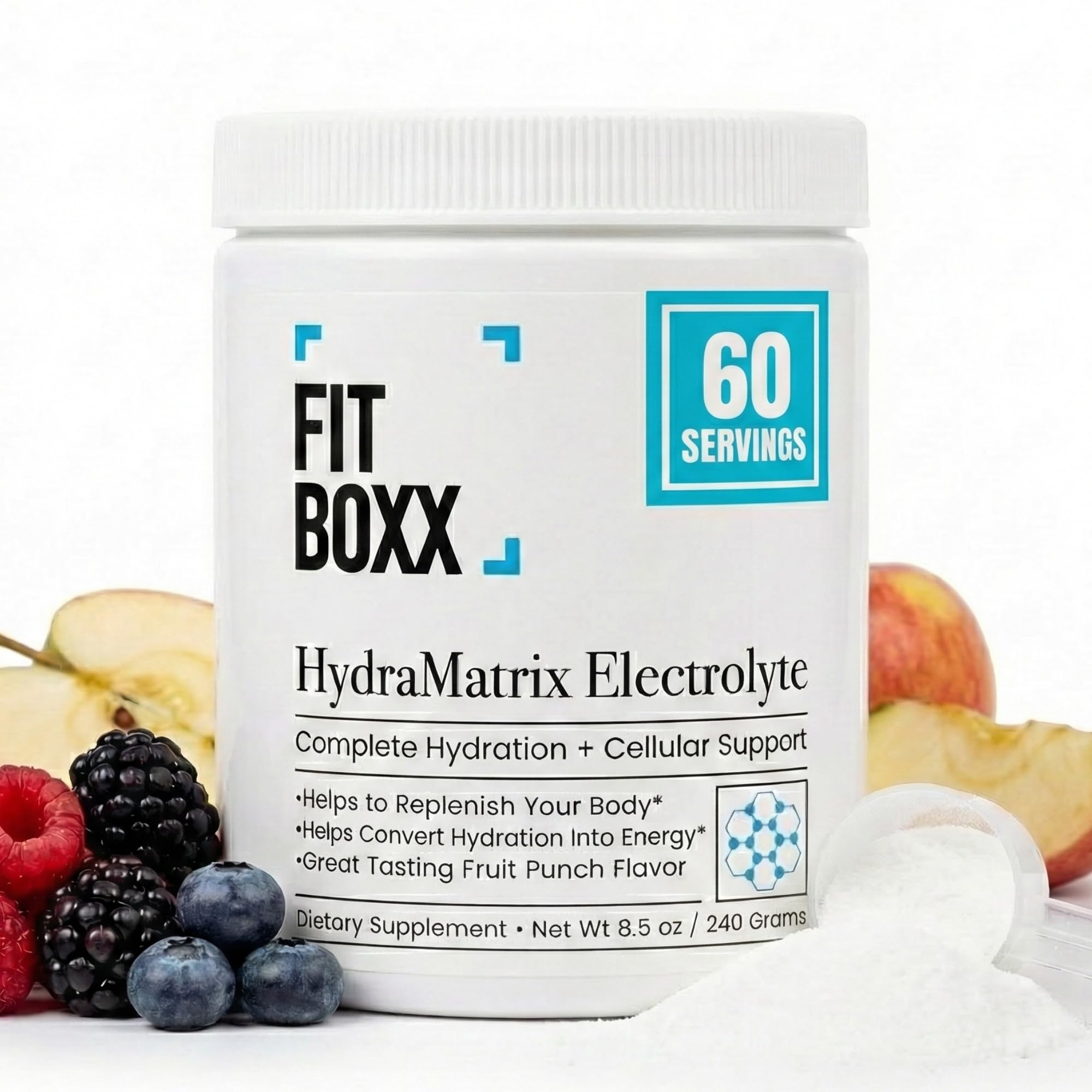 Fit Boxx HydraMatrix Electrolyte Hydration Powder - Rapid Rehydration with Potassium, Magnesium & B Vitamins, Pink Salt+Clean Electrolytes, Focus & Muscle Recovery Fruit Punch Flavor, 60 Servings