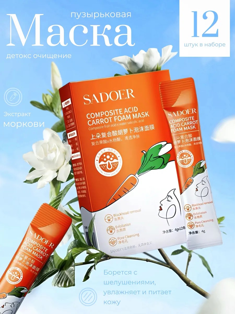 Пузырьковая маска для лица Sadoer удаляет черные точки, снимает воспаления, обладает заживляющим эффектом, восстанавливает клетки. Очищающая, увлажняющая маска для лица из натуральных ингредиентов и витаминов в составе, активно работает против черных точек, подкожных высыпаний: угревой сыпи, акне, постакне: масло жожоба, экстракт овса, уголь, каолин, экстракт гамамелиса и другие компоненты и ничем не уступает маске для лица корея. Способ применения маски для лица от черных точек: после очистки кожи лица от загрязнений и декоративной косметики ложечкой наносим маску для лица пузырчатаю на очищенную лицо равномерно: на нос, подбородок, лоб, щеки, не затрагивая область вокруг глаз, зону бровей и губ. После образования легкой пены аккуратно массируем кожу в течение 1 минуты. Через 15 минут смыть маску теплой водой. Уходовая маска очищает, питает, увлажняет, работает как активатор и стимулятор чистоты, красоты, здорового вида, гладкости кожи. Для всех типов кожи: нормальной, жирной, сухой, комбинированной, чувствительной, проблемной кожи. Профессиональная угольная маска заменит поход в салон, ее можно наносить дома днем, вечером после душа, чтобы активные beauty-компоненты работали всю ночь, очищая кожу, делая ее свежей, здоровой, гладкой. Использовать маску для лица 2-3 раза в неделю. Эффективную помощь проблемной коже можно совмещать с антивозрастными, разглаживающими, омолаживающими масками для лечения и укрепления кожи, в комплексе с восстанавливающими, увлажняющими, питательными тканевыми масками, с патчами на основе алоэ и патчами для удаления прыщей, пилинг-кремами от постакне, с разогревающим/успокаивающим тоником, с сывороткой для сужения пор. Бережная маска с защитным эффектом - подарок для любого праздника. Пузырчатую маску в банке и шпателем дарят на день рождения, Новый год/Рождество, День святого Валентина/8 Марта любимой девушке, сестре, коллеге. Маска для лица от прыщей изготовлен в Китае по стандартам корейской косметики.
