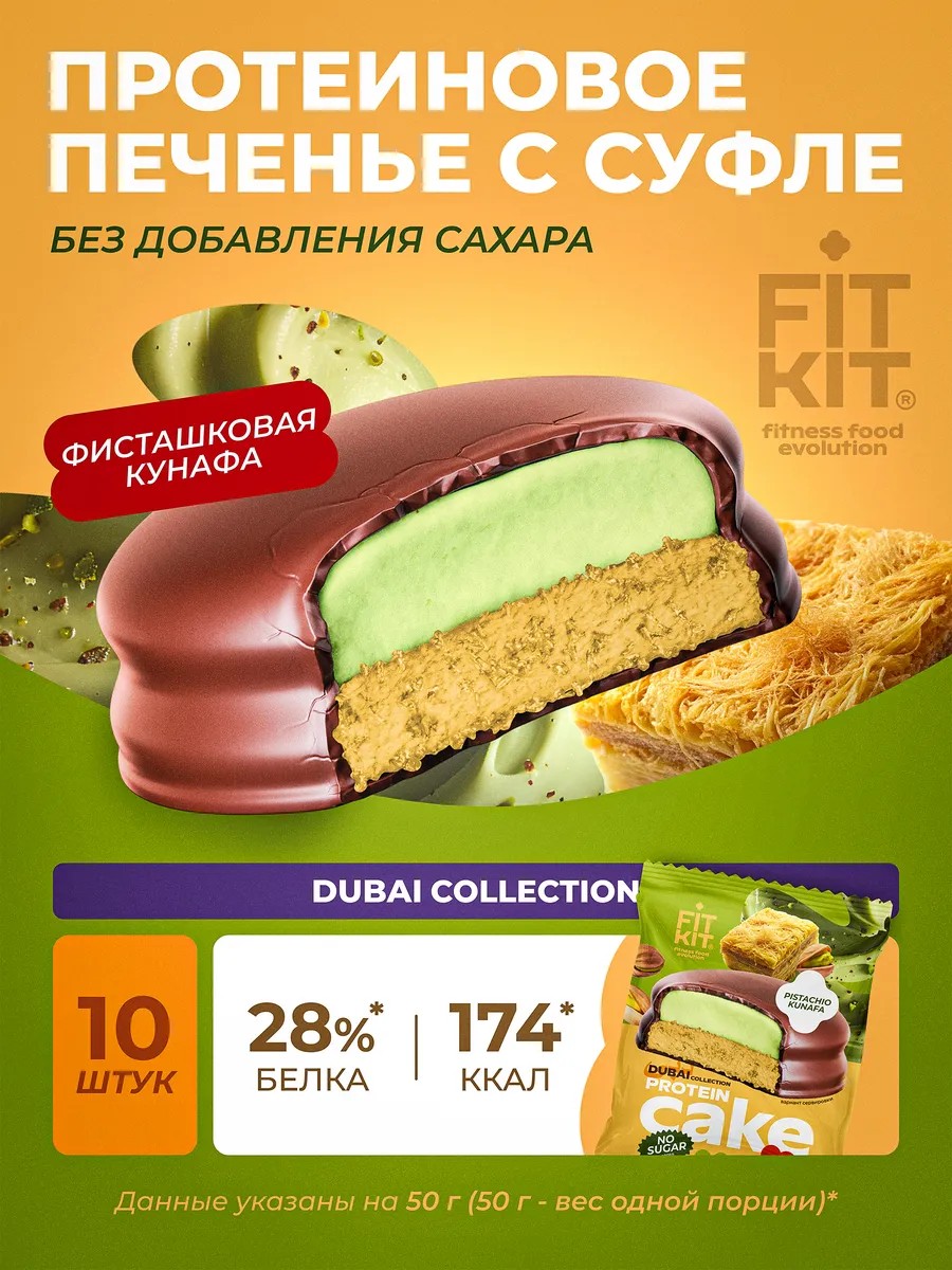 Enjoy a delicious and healthy dessert from FITKIT – the perfect choice for those watching their diet. Protein cookies with pistachio kunafa and chocolate glaze will become your favorite snack.