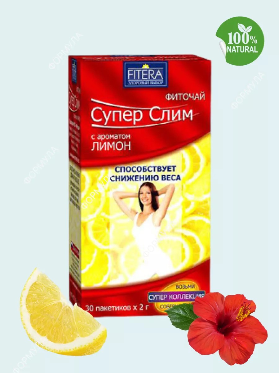 Фиточай Супер Слим с ароматом лимона - это биологически активная добавка (БАД) к пище, которая способствует снижению веса благодаря своим составляющим, и является дополнительным источником антоцианов и сеннозидов. Рекомендован для лиц, контролирующих массу тела. Фиточай нормализует обмен веществ, улучшает пищеварение, способствует выведению шлаков из организма. Его регулярное использование поможет уменьшить вес.