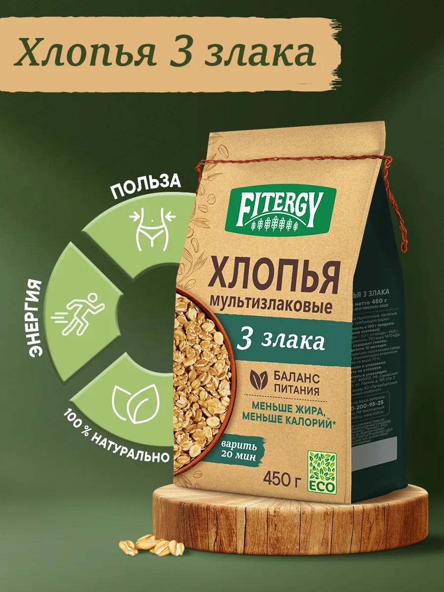 культур: пшеницы, овса и ячменя. Смесь хлопьев 3 злака – идеальное сочетание для