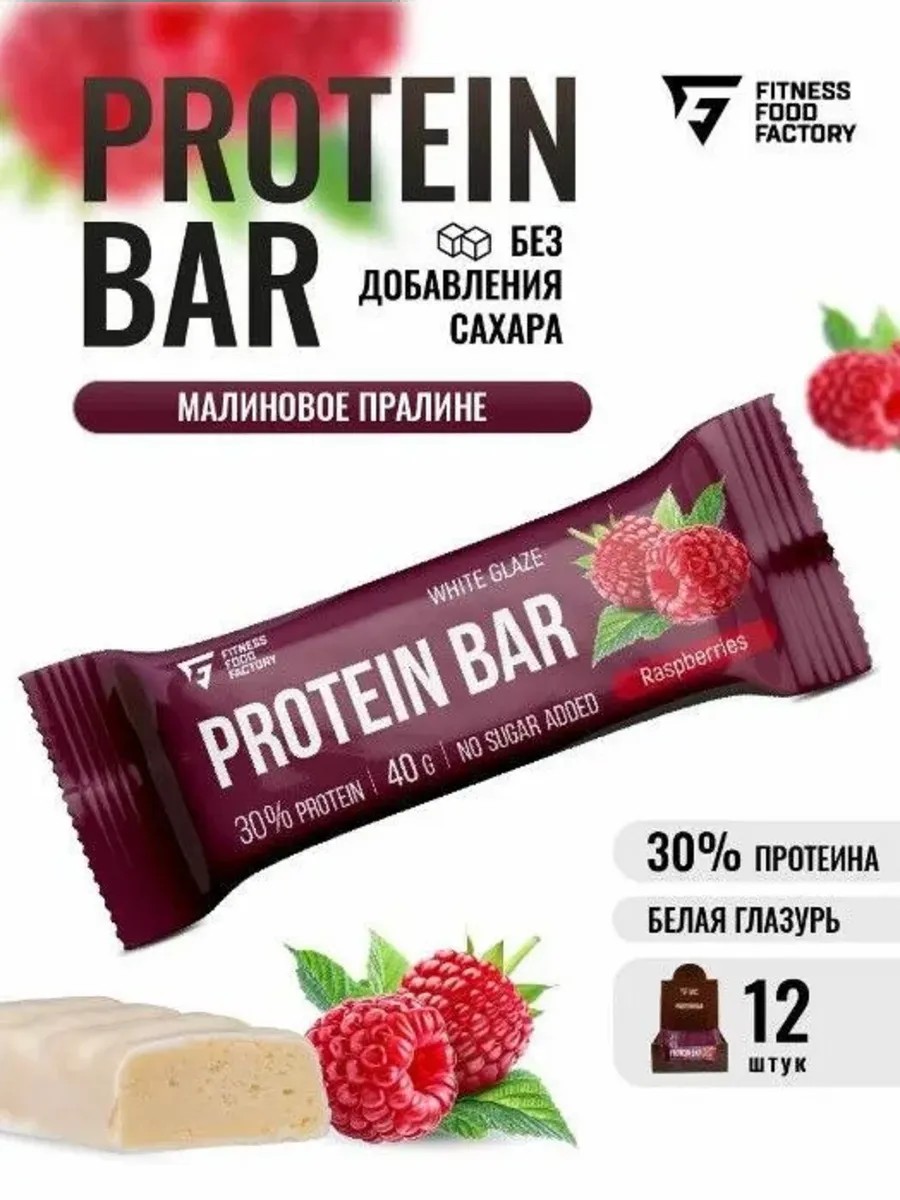 Fitness Food Factory 40гр.*12шт. Батончик Protein Bar Малиновое пралине
