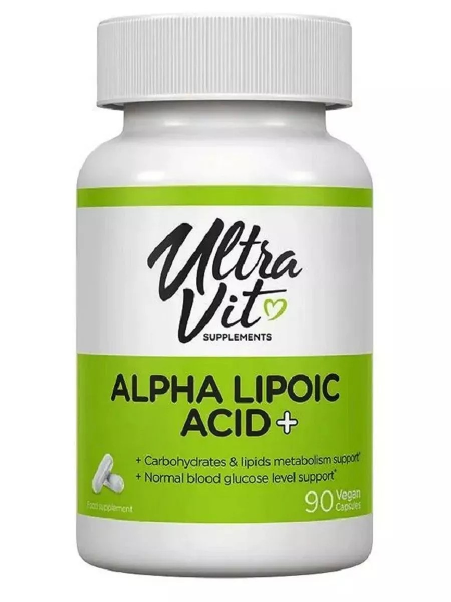 UltraVit Альфа-липоевая кислота, 100 мг, капсулы, 90 шт. Альфа-липоевая кислота (АЛК) - Экологически чистый продукт без использования ингредиентов животного происхождения, ГМО и сохранителей. Искусно сбалансированный состав обеспечивает долгосрочное положительное воздействие. Эксперты советуют использовать для веганов. Продукт пользуется популярностью среди опытных спортсменов, а также любителей физических нагрузок. Для повышения эффективности комплекса добавлен Пиколинат Хрома, который регулирует аппетит. Альфа-липоевая кислота проявляет мощное антиоксидантное действие. Она способствует устранению разрушительного воздействия свободных радикалов на клеточном уровне. Это помогает замедлить старение клеток и ускорить их регенерацию после повреждений. Иногда организм не способен поддерживать оптимальное количество данного вещества. Интенсивные физические нагрузки или проблемы со здоровьем снижают уровень альфа-липоевой кислоты в организме. Специалисты рекомендуют использовать биологически активные добавки для восстановления баланса. Преимущества: Мощное антиоксидантное действие. Подавление разрушительного воздействия свободных радикалов. Замедление процесса старения. Ускорение обмена веществ. Поддержка здоровья кожи. Укрепление сердечно-сосудистой системы. Стимулирование процесса сжигания жира. Высокая биодоступность. Подходит для веганов. Рекомендации по применению: в качестве диетической добавки для взрослых принимайте от 1 до 3 капсул в день во время приема пищи, запивая водой.