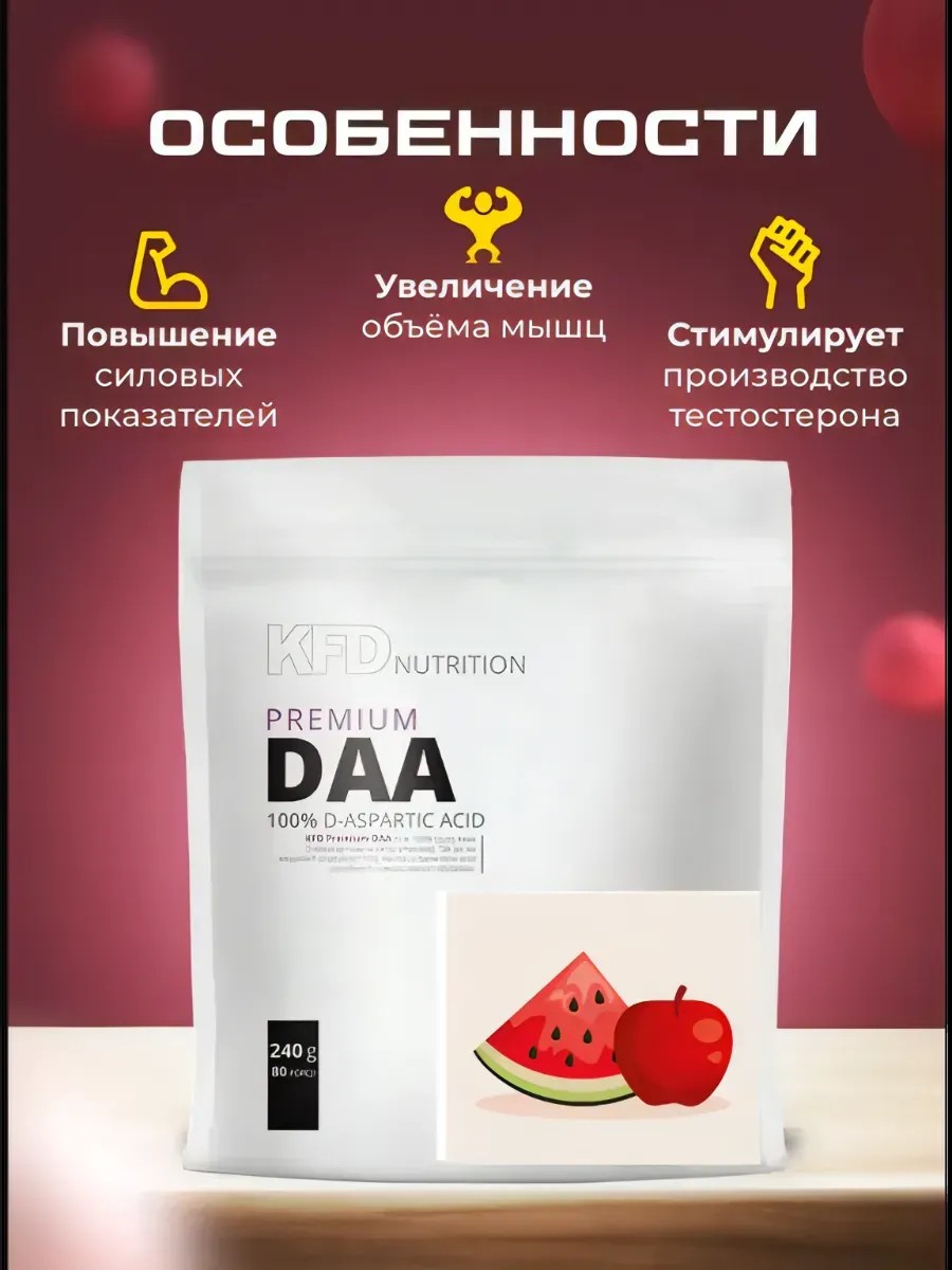 KFD Nutrition Premium DAA со вкусом питайи – пищевая добавка для атлетов, содержащая аспарагиновую кислоту высокого качества. Повышает выносливость, позволяя тренироваться в более интенсивном режиме, способствует наращиванию мышечной массы. Улучшает концентрацию и общее самочувствие. Также аспарагиновая кислота важна для нормализации работы ЦНС и желез внутренней секреции. Добавка повышает уровень тестостерона, положительно влияет на либидо, потенцию. Улучшает качество сексуальной жизни. Стимулирует выработку лютеинизирующего гормона. Применение: Одну порцию смешать с 150-200 мл холодной воды или сока и тщательно перемешать. Использовать в соответствии с индивидуальными потребностями и не чаще, чем дважды в день, например, утром перед едой и вечером. Потреблять сразу после приготовления. Использовать в течение максимум 8 недель.