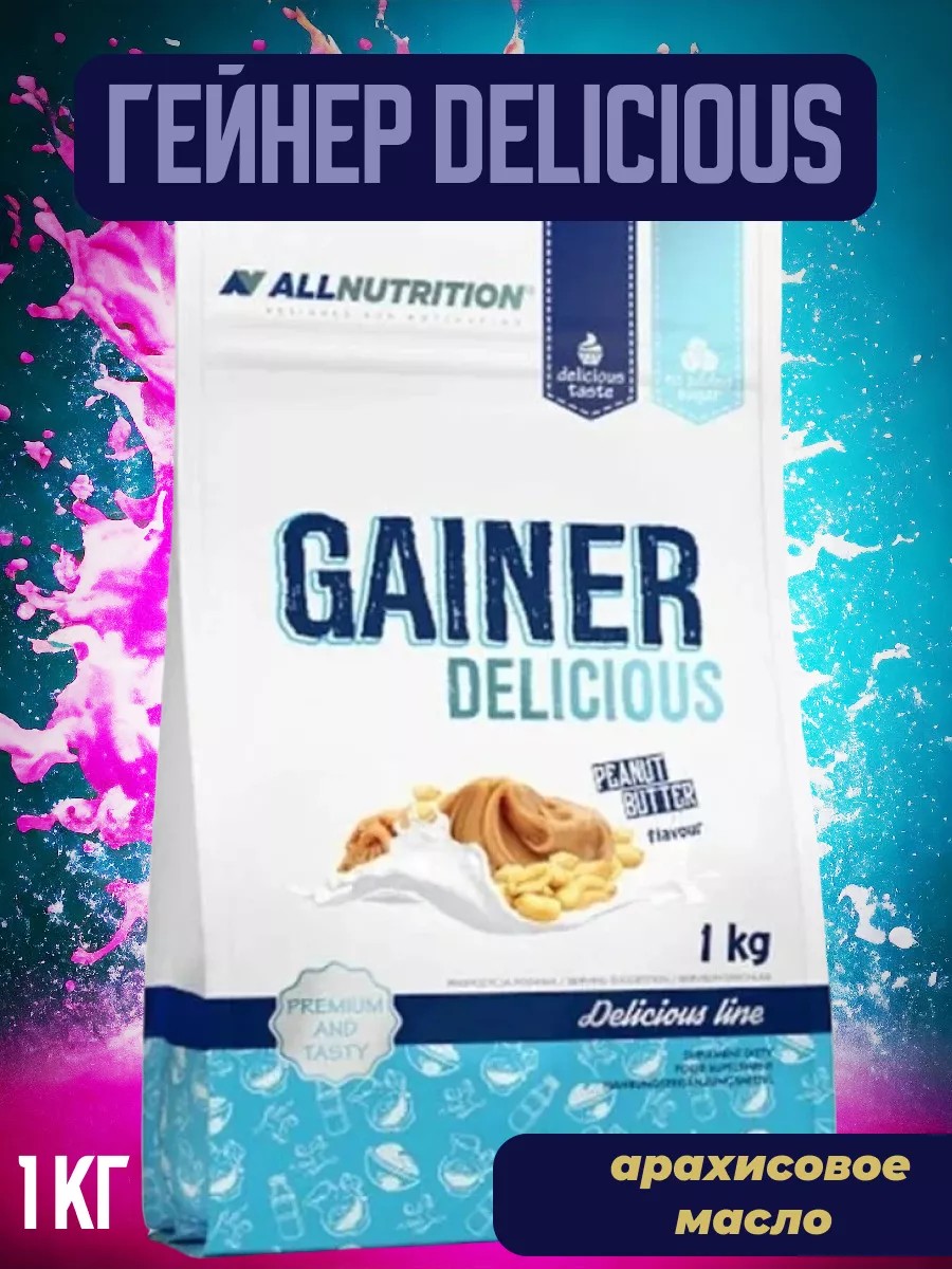 Гейнер для набора массы AllNutrition Gainer Delicious 1000 грамм Арахисовое масло Gainer Delicious - это питательное вещество, в котором содержание углеводов составляет около 61-66% от общего состава. Кроме того, он содержит 20 грамм белка и только 2,9-3,6 грамма жира на 100 грамм продукта. Из-за различного времени поглощения углеводов приводит к увеличению выделяемой энергии. Действие зависит от времени, в которое оно доставляется организму: Прием гейнера для набора мышечной массы перед тренировкой заряжает энергией и задерживает появление симптомов усталости во время тренировки. Гейнер, принимаемый сразу после тренировки, восстанавливает запасы мышечного гликогена и поддерживает анаболические процессы. Большая доза углеводов будет стимулировать инсулин, который, как строительный гормон, также будет транспортировать аминокислоты в ткани организма и другие полезные питательные вещества, содержащиеся в еде, чтобы улучшить регенеративные процессы. Способ применения: Смешать две мерные ложки (100 г) с 250-300 мл холодной воды или молока и тщательно взбить в блендере или шейкере до получения однородного напитка. Принимать по одной порции в день до или после тренировки. В дни без тренировок принимать одну порцию утром. В зависимости от количества воды можно регулировать насыщенность вкуса и аромата добавки. Продукт рекомендуется для взрослых, которые выполняют интенсивные и продолжительные физические нагрузки, приводящие к мышечной усталости и истощению запасов гликогена в скелетных мышцах. Не используйте, если у вас аллергия на какие-либо компоненты продукта. Может содержать сою. Продукт не должен использоваться беременными женщинами и кормящими матерями. Пищевые добавки не должны использоваться в качестве замены разнообразного и сбалансированного питания. Рекомендуется сбалансированное питание и здоровый образ жизни. Не превышайте рекомендуемую суточную дозу. Содержание белка в продукте указано в сухом веществе. Рекомендации по применению: Смешать две мерные ложки (100 г) с 250-300 мл холодной воды или молока и тщательно взбить в блендере или шейкере до получения однородного напитка. Принимать по одной порции в день до или после тренировки. В дни без тренировок принимать одну порцию утром. В зависимости от количества воды можно регулировать насыщенность вкуса и аромата добавки.