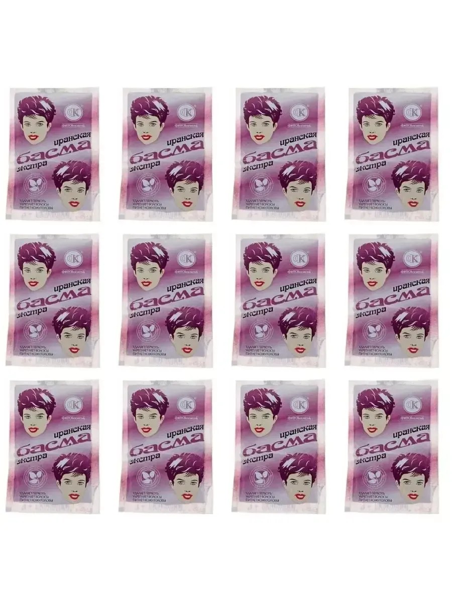 Fito косметик, басма иранская натуральная, В комплекте 12 шт по 25г. Иранская басма - натуральная растительная краска, предназначенная для окрашивания и укрепления волос, в том числе седых, в сочетании с хной. Окрашивает волосы в насыщенные тёмные тона. Прекрасно кондиционирует, восстанавливает структуру волос, питает кожу головы, укрепляет корни, устраняет перхоть и создаёт дополнительный объём, делая волосы более густыми и пышными.