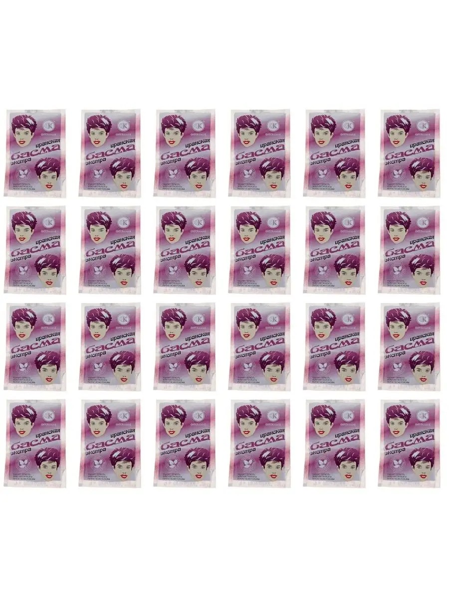 Phytocosmetic Iranian Basma Natural, 24 pcs. 25g each. Iranian Basma is a natural plant-based hair dye designed to color and strengthen hair, including gray hair, when combined with henna. It colors hair in rich, dark tones. It perfectly conditions, restores hair structure, nourishes the scalp, strengthens roots, eliminates dandruff, and creates additional volume, making hair thicker and fuller.