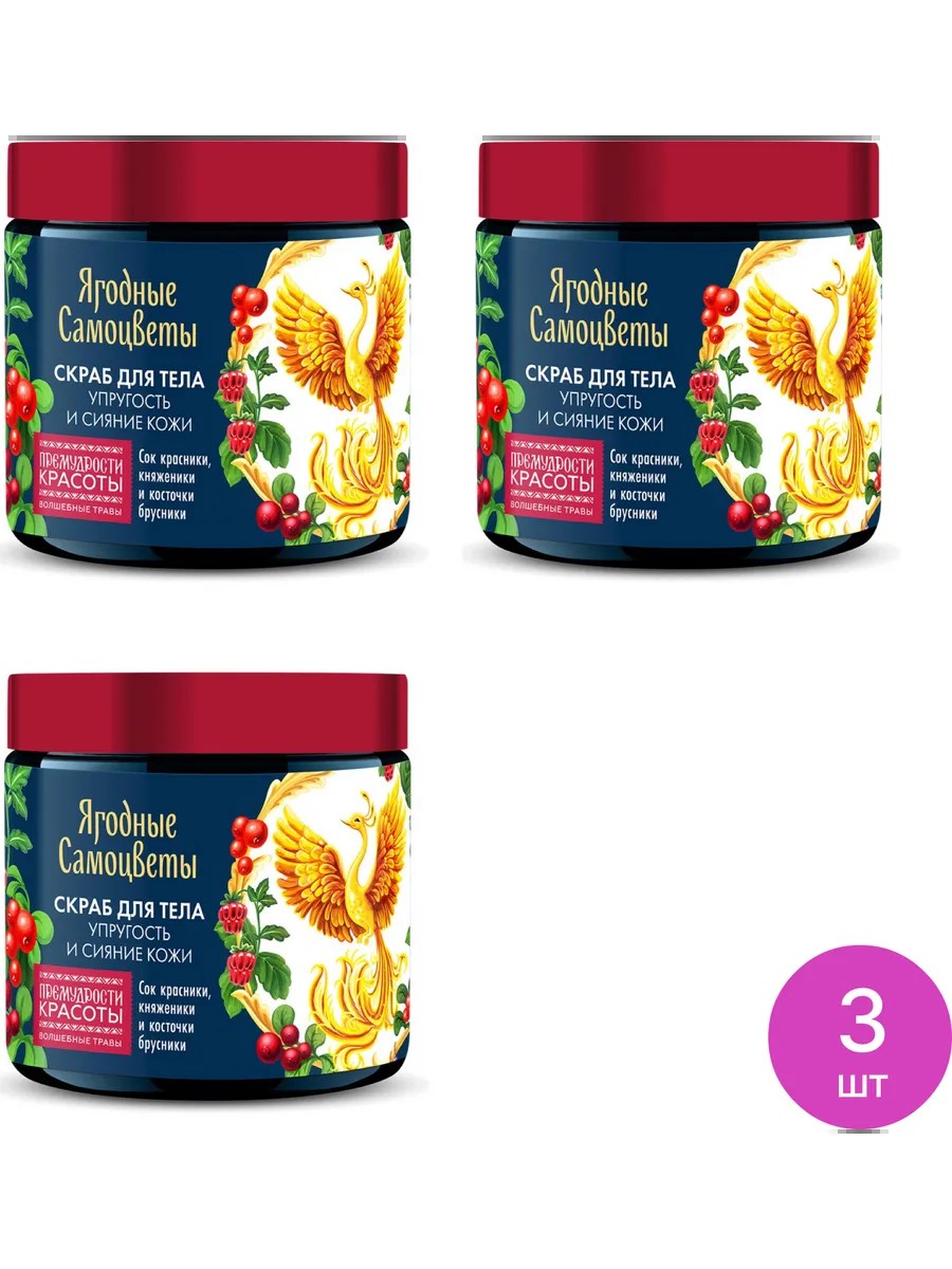 Fito Косметик Скраб для тела Ягодные самоцветы упругость и сияние кожи с соком красники, княженики и косточки брусники, 250мл / пилинг. Комплект состоит из 3 шт. Цена за комплект. Натуральный скраб для тела Fito Косметик Ягодные самоцветы, придающий коже тонус и упругость, это эффективное средство для ухода за кожей, более чем на 99% состоящее из натуральных компонентов. Пилинг для тела деликатно отшелушивает и очищает кожу. Предки верили, что у каждой ягоды свой характер и нрав - а в ягодном кладезе сила великая. Густой скраб Ягодные Самоцветы нежно очищает и обновляет кожу, придавая ей гладкость и сияние. Свежие ягоды брусники и княженики хранят всю целебную силу леса. Сок этих лесных ягод насыщает кожу витаминами и природными антиоксидантами, заряжает энергией и тонусом. Аромат натурального скраба для тела с нотами сока красники, княженики и косточки брусники оставляет на коже изысканный аромат и гладкость на весь день! Скраб для тела с маслами состоит из: Maris Salt, Vaccinium Vitis-Idaea Seedcake Powder, Rubus Idaeus Seed Oil, Rubus Arcticus Fruit Extract, Glycerin, Aqua, PEG-40 Hydrogenated Castor Oil, Glycerin, Vaccinium Vitis-Idaea Fruit Juice, Cetyl Alcohol, Parfum, Sodium Benzoate, Potassium Sorbate, Sorbic Acid, CI 73360. Скрабы для тела / отшелушивающий скраб для тела /скраб для тела антицеллюлитный.
